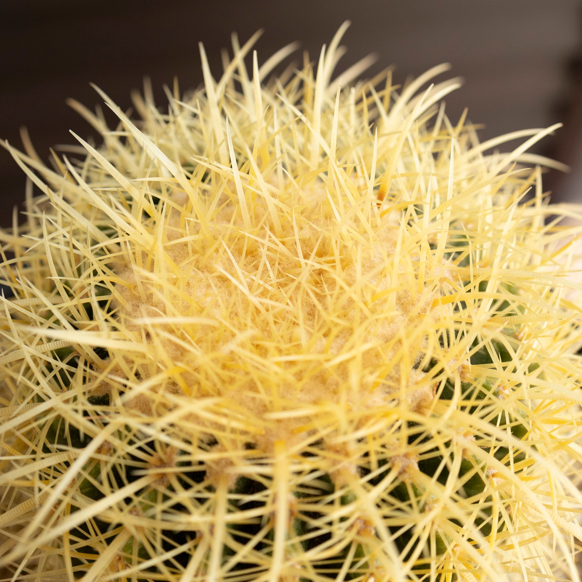 Echinocactus grusoniiという名の品種で黄金色の鋭いトゲで覆われているのが特徴的。