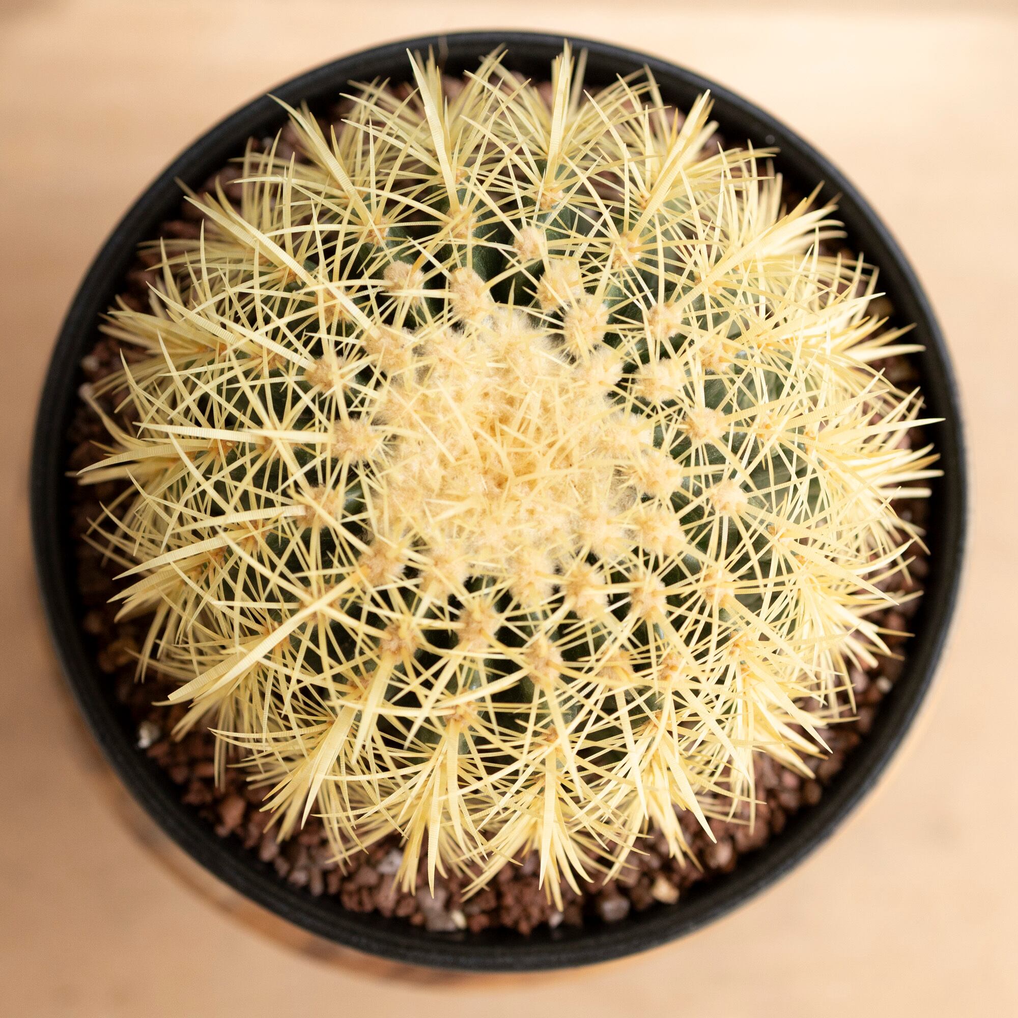 Echinocactus grusoniiという名の品種で黄金色の鋭いトゲで覆われているのが特徴的。