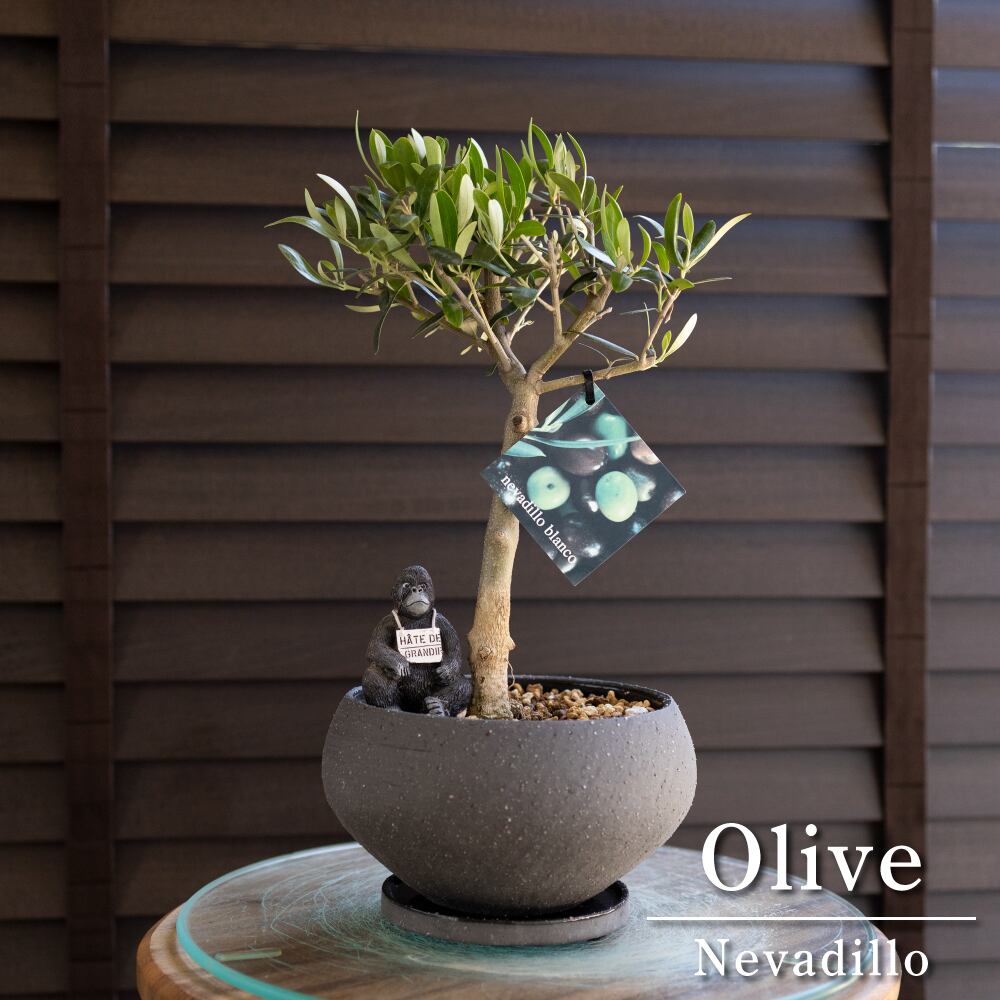 創樹 Olive オリーブの木 4.5号 盆栽 SOUJU Nevadillo blanco ネバディロブランコ オリーブ 陶器鉢 0426BK