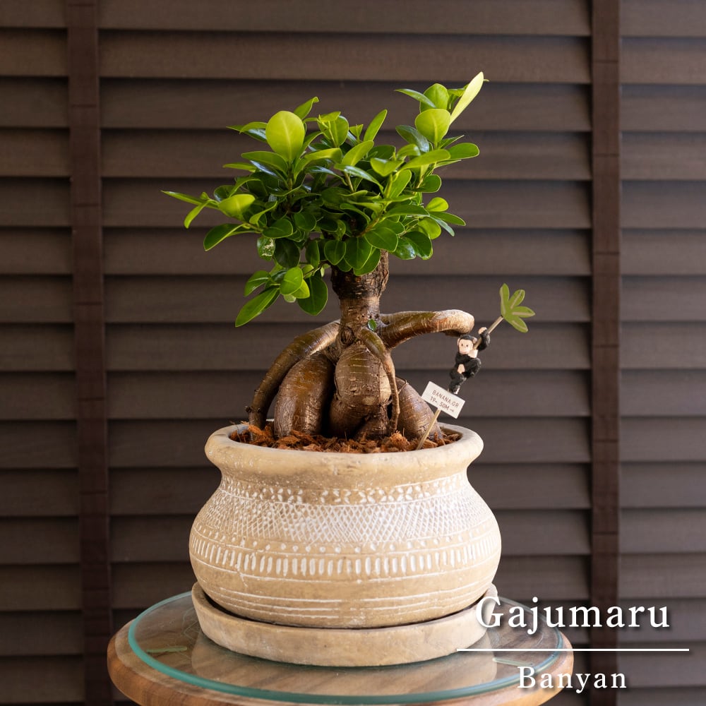ガジュマルの木 7号 陶器鉢 ピック付 観葉植物 ガジュマル 多幸の木 0803BE