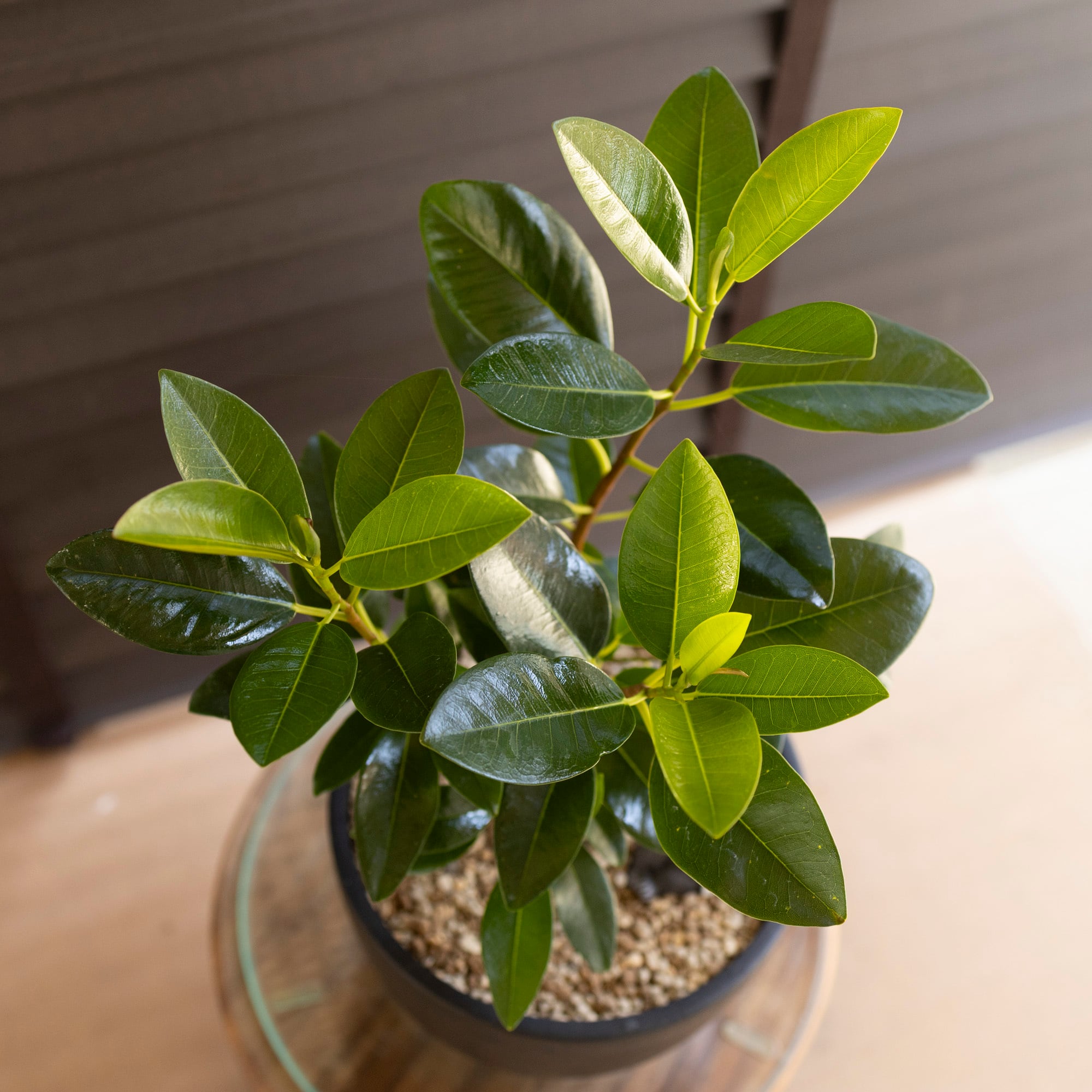ルビギノーサはゴムの木の仲間で、丈夫で5度ぐらいまで耐えられるほどの耐寒性があります。初めてインテリアグリーンを購入する方にも育てやすい植物です。