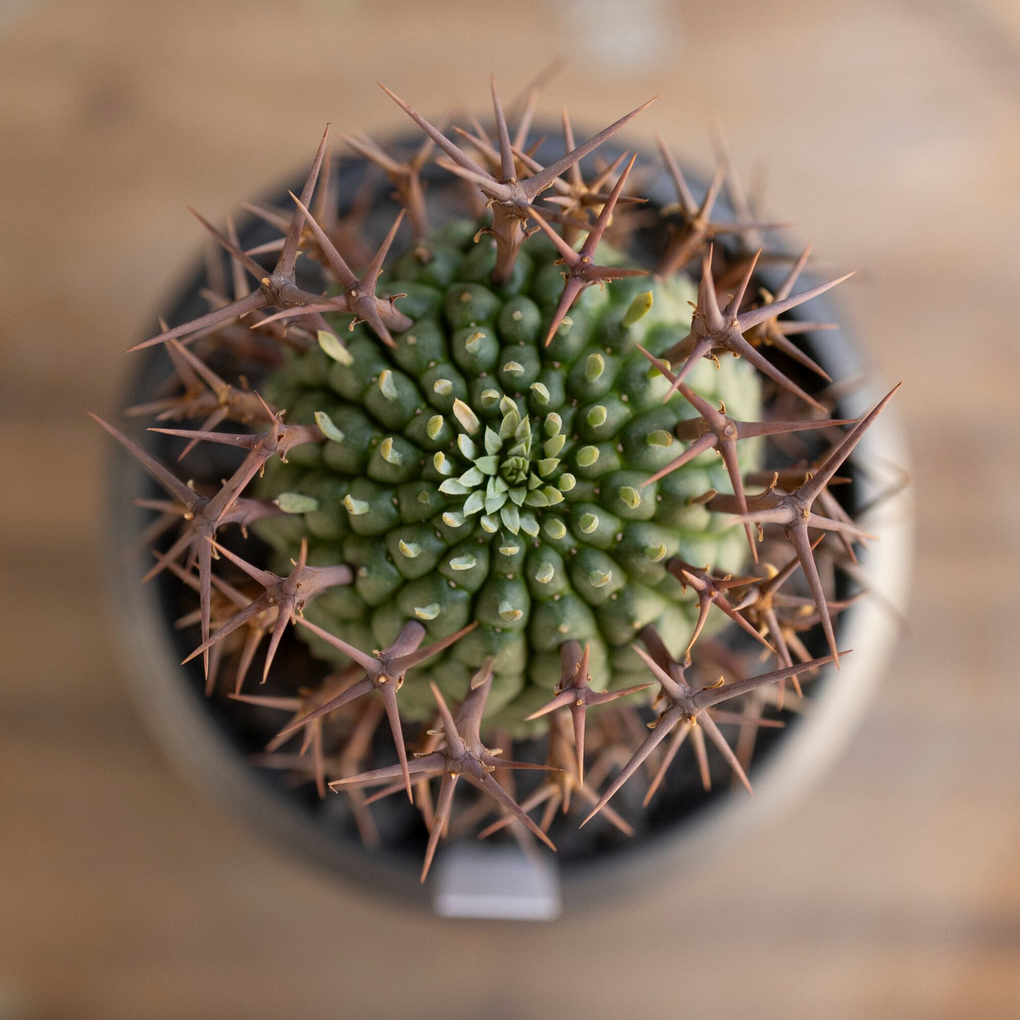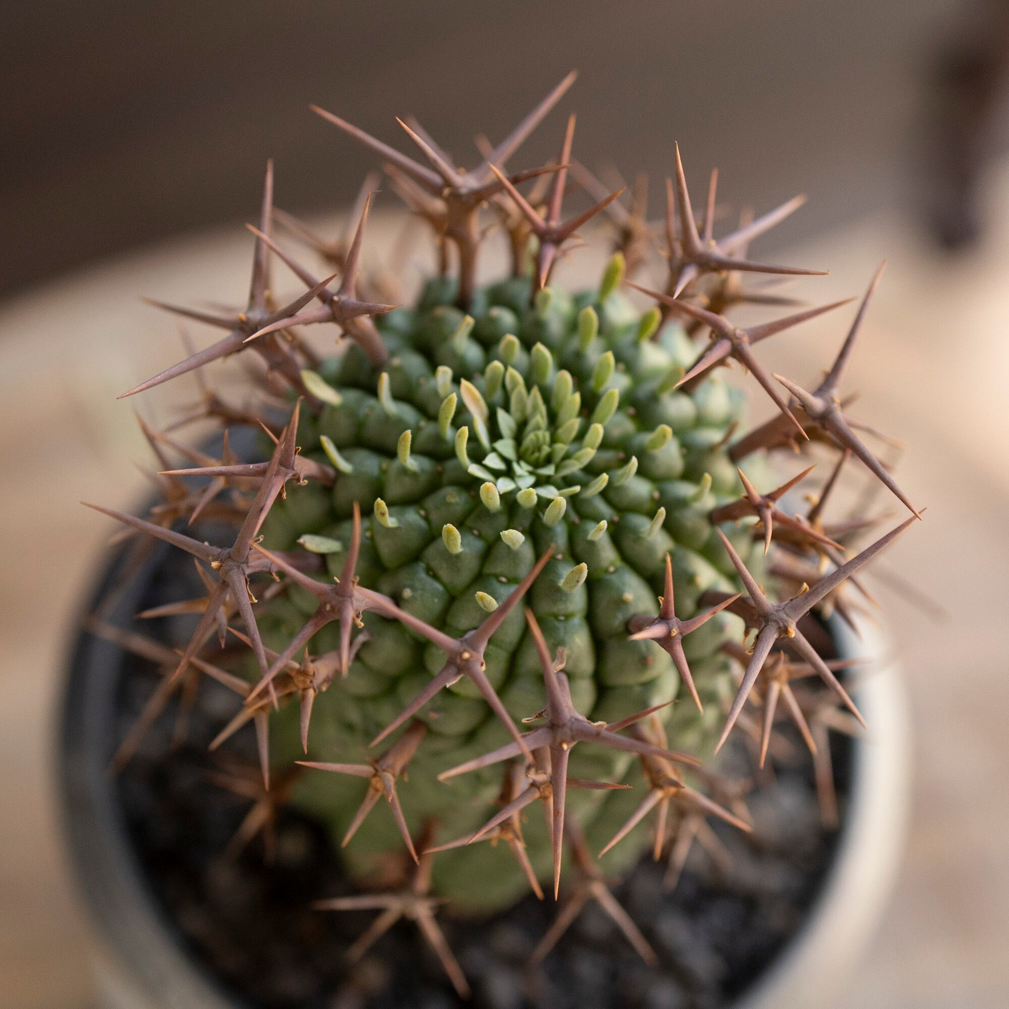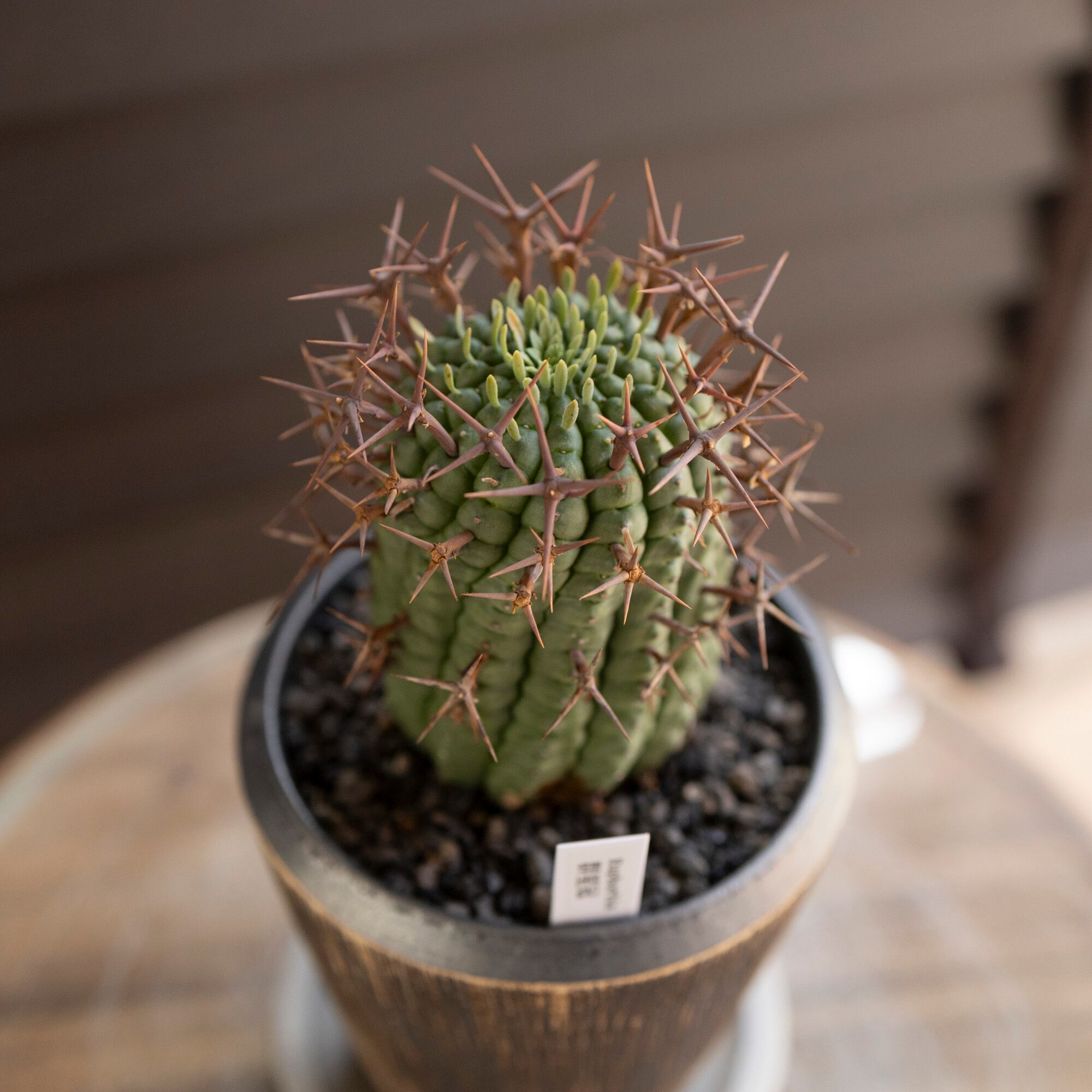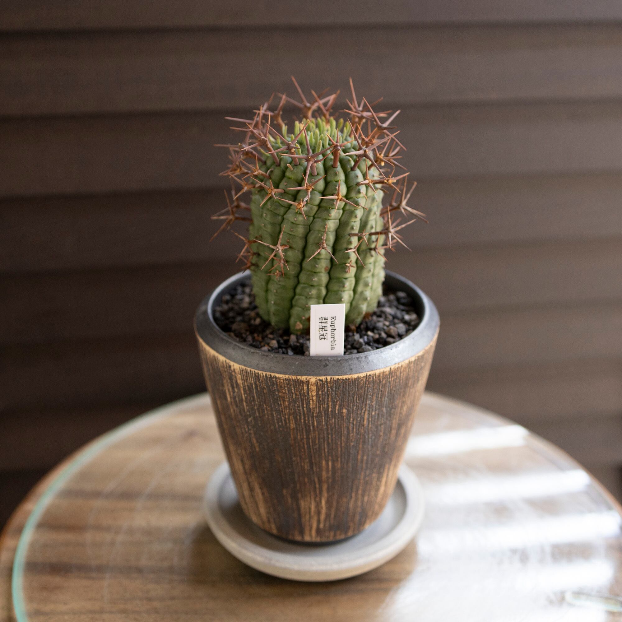 ユーフォルビア 群星冠 ステリスピナ Euphorbia Stellispina 信楽焼 陶器鉢 サボテン 多肉植物