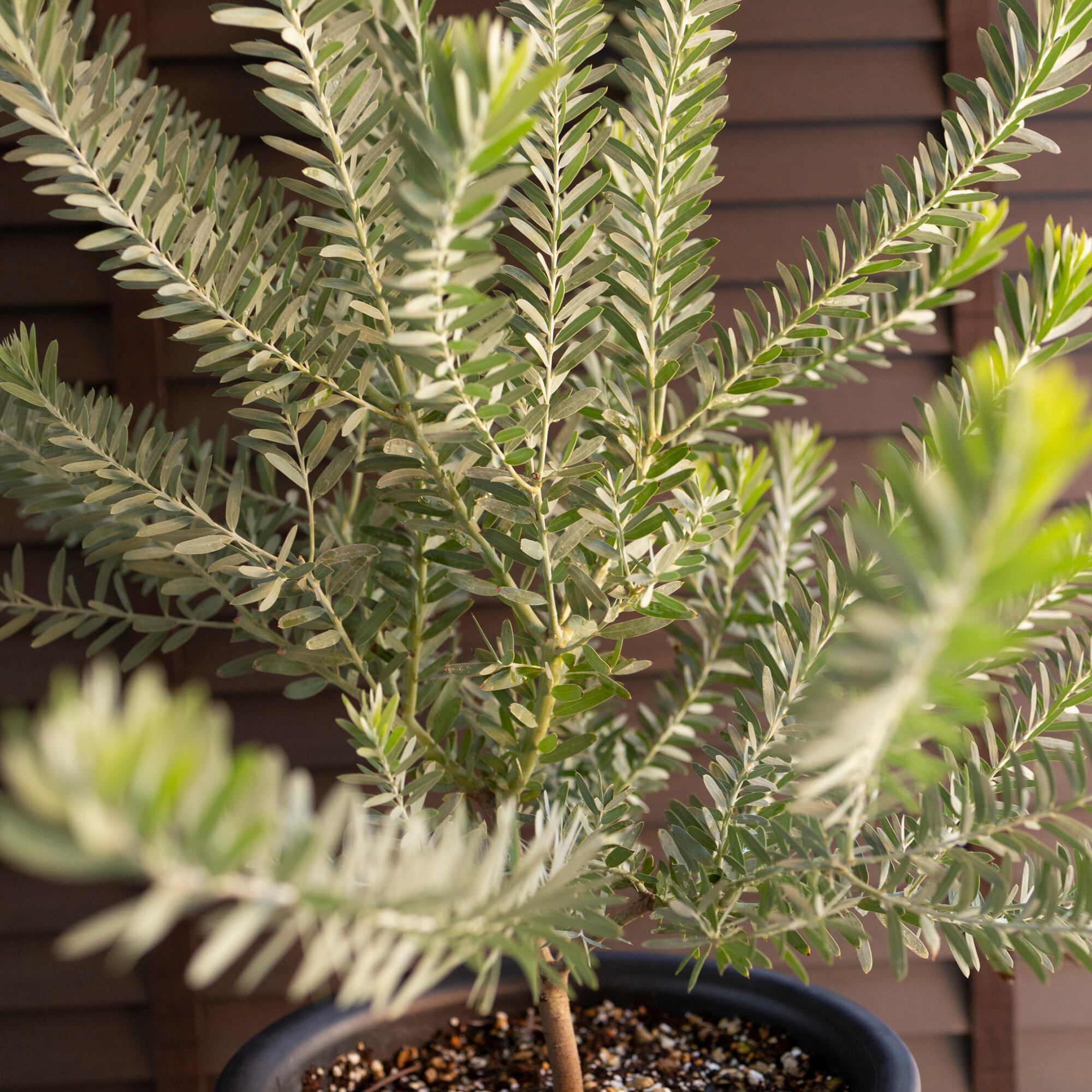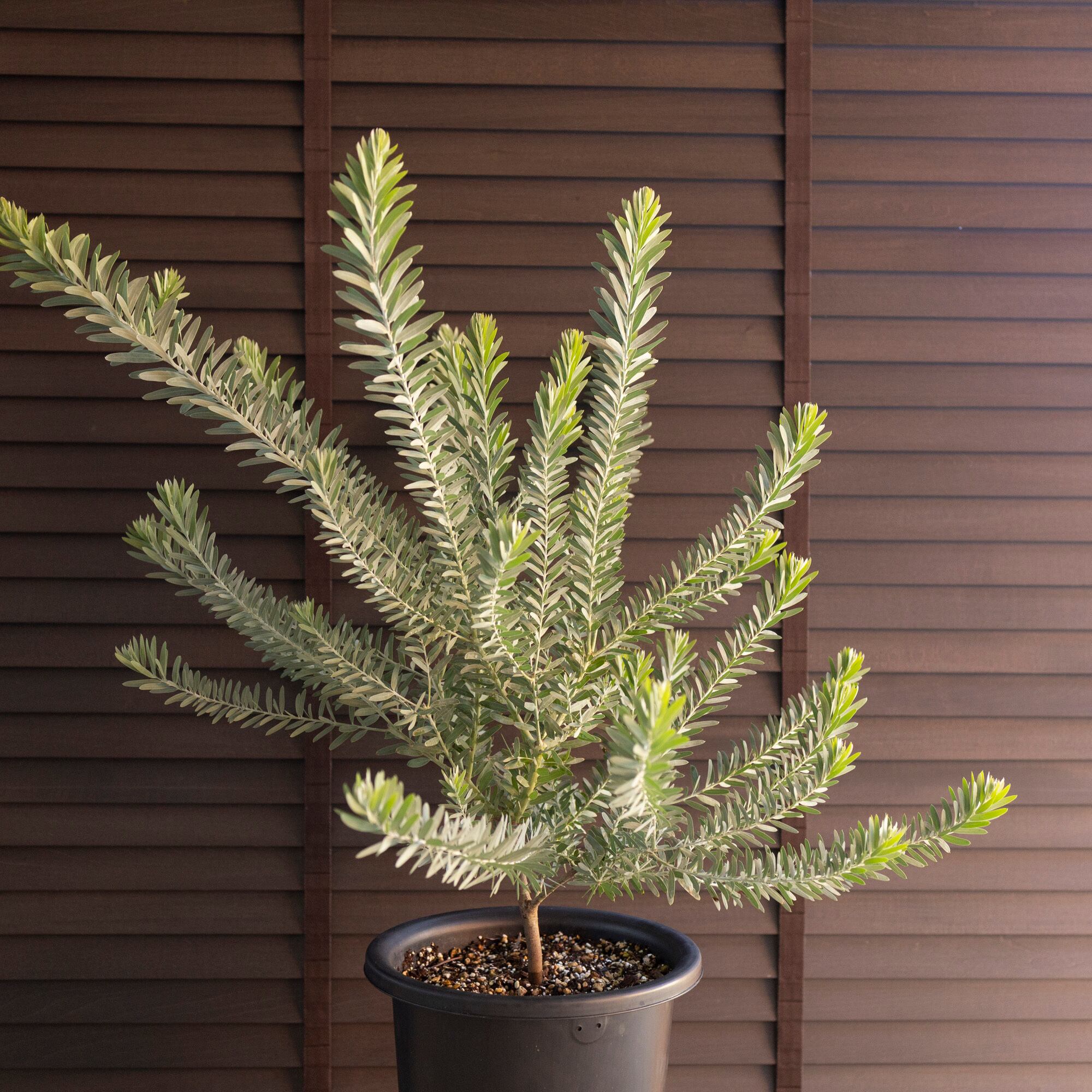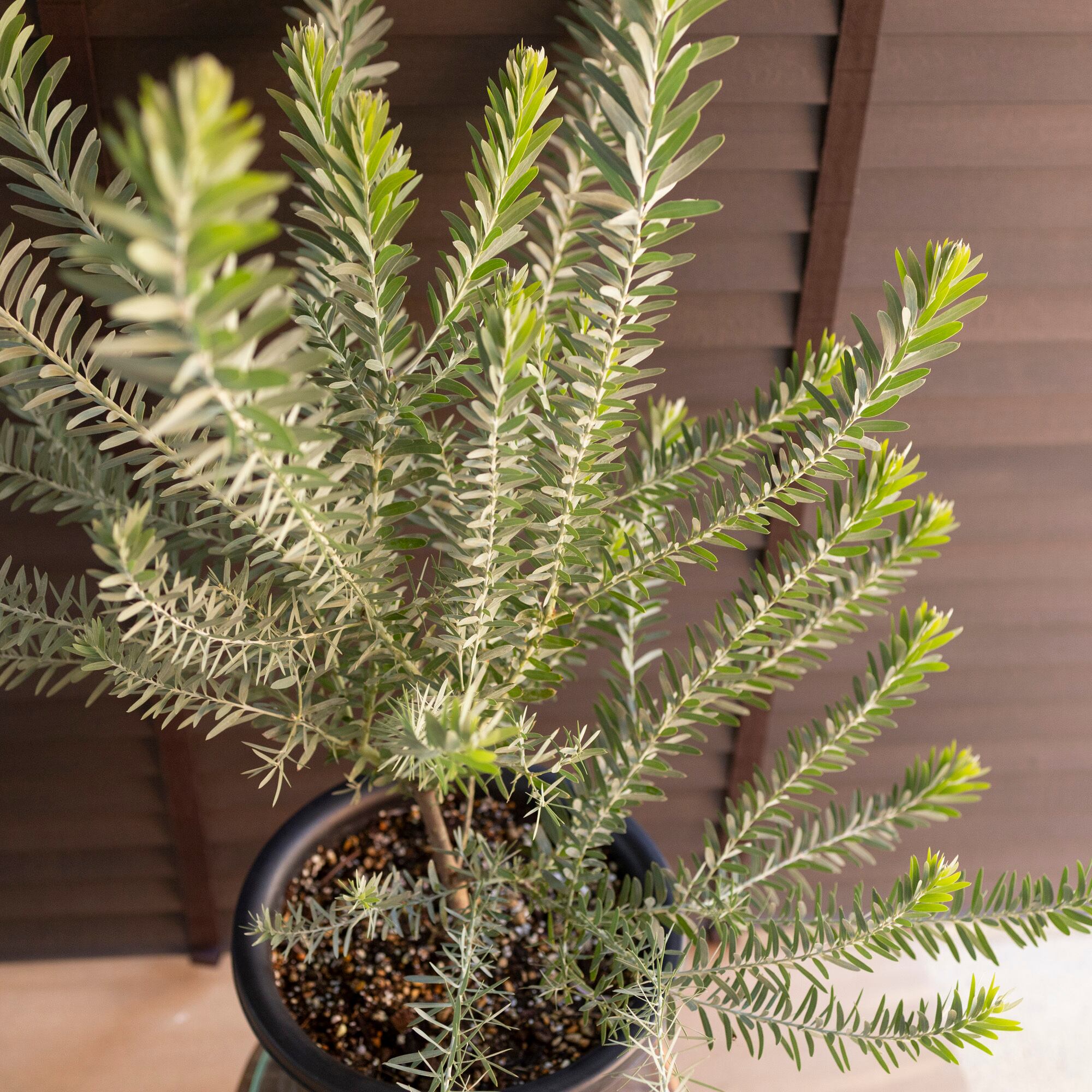 青みがかった美しい葉色と春に咲く明るい黄色の花が魅力的なアカシアブルーブッシュ。