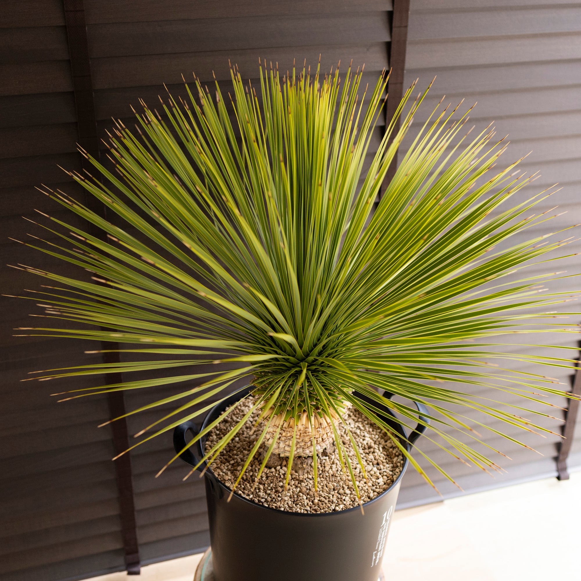 珍しい細葉タイプのユッカロストラータで、国内実生で育てられた株となります。根回りもバッチリです。