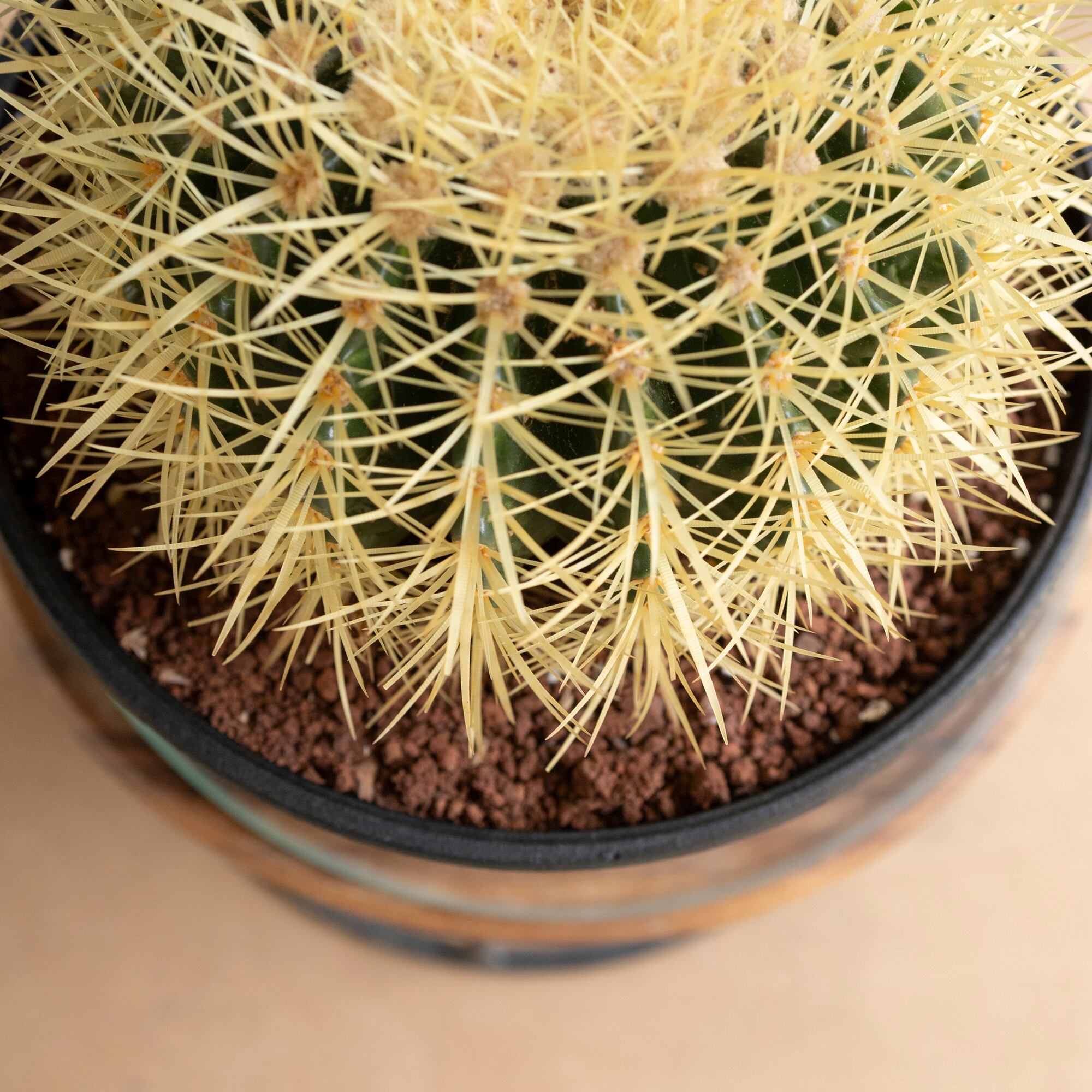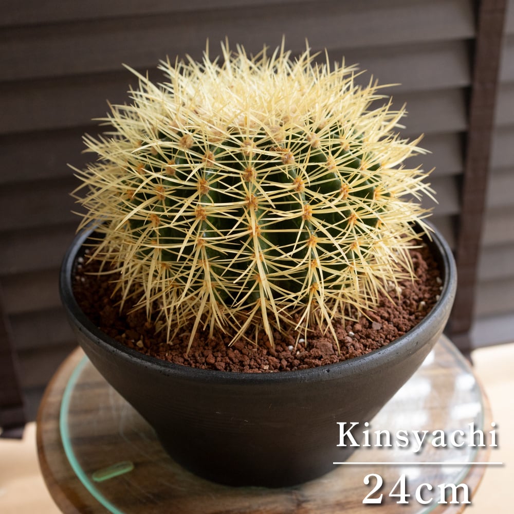 【発根済】24cm 金鯱 サボテン 8号 ドライガーデン 金シャチ キンシャチ 陶器鉢 1025BK-1
