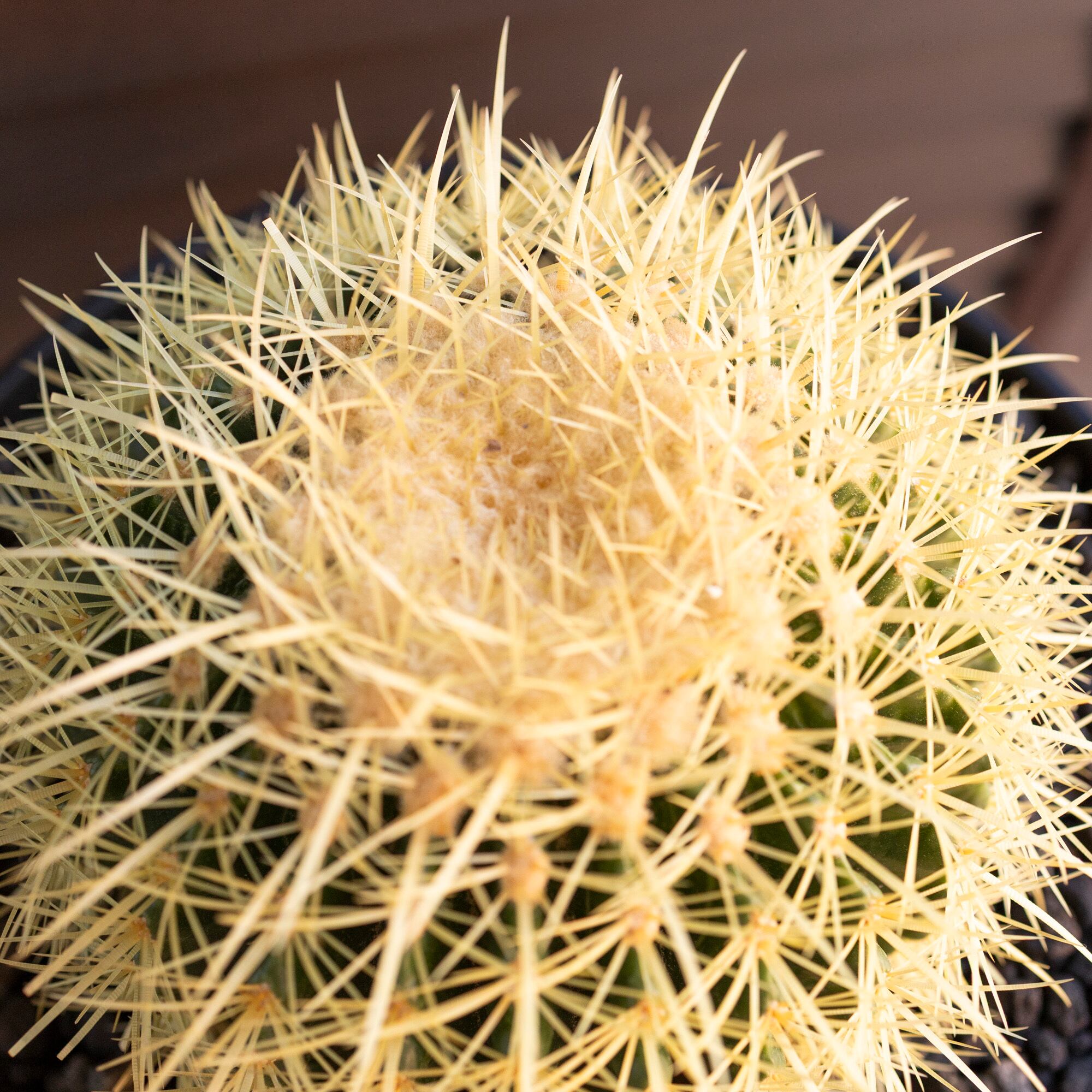 Echinocactus grusoniiという名の品種で黄金色の鋭いトゲで覆われているのが特徴的。