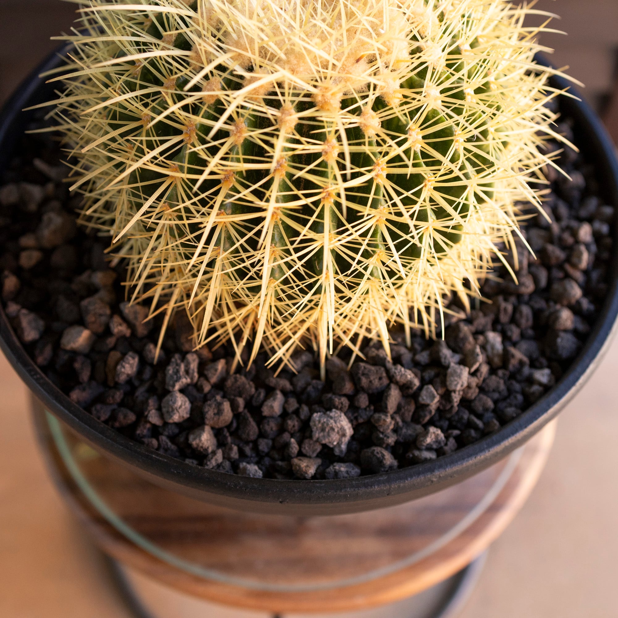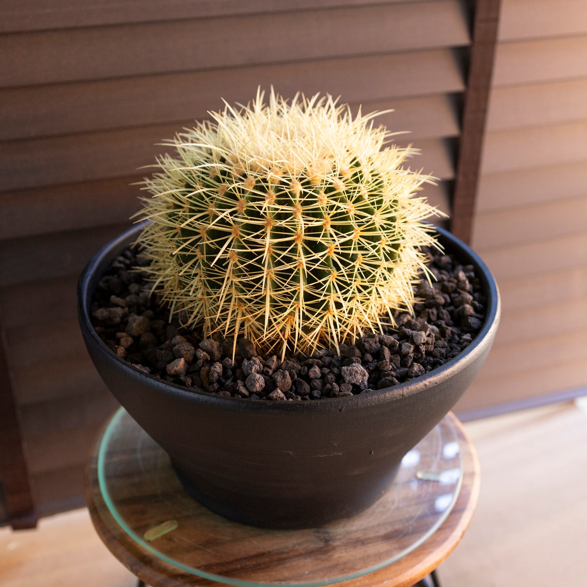 【発根済】30cm 金鯱 サボテン 10号 ドライガーデン 金シャチ キンシャチ 陶器鉢 1108BK