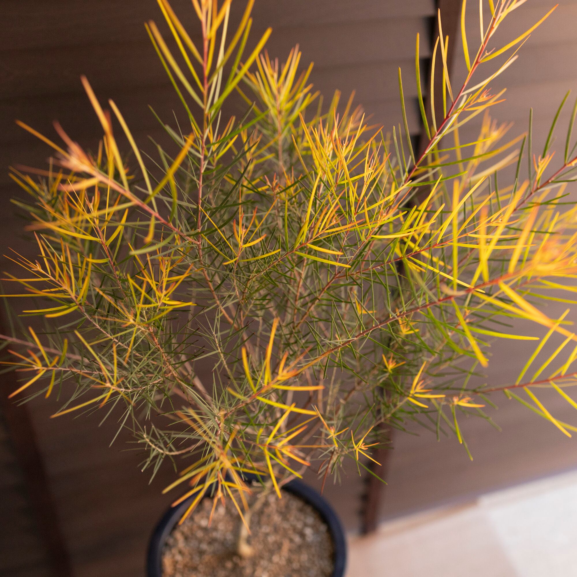 発色のいいゴールドに色づく葉っぱが美しく、落葉しないので一年中楽しめます。