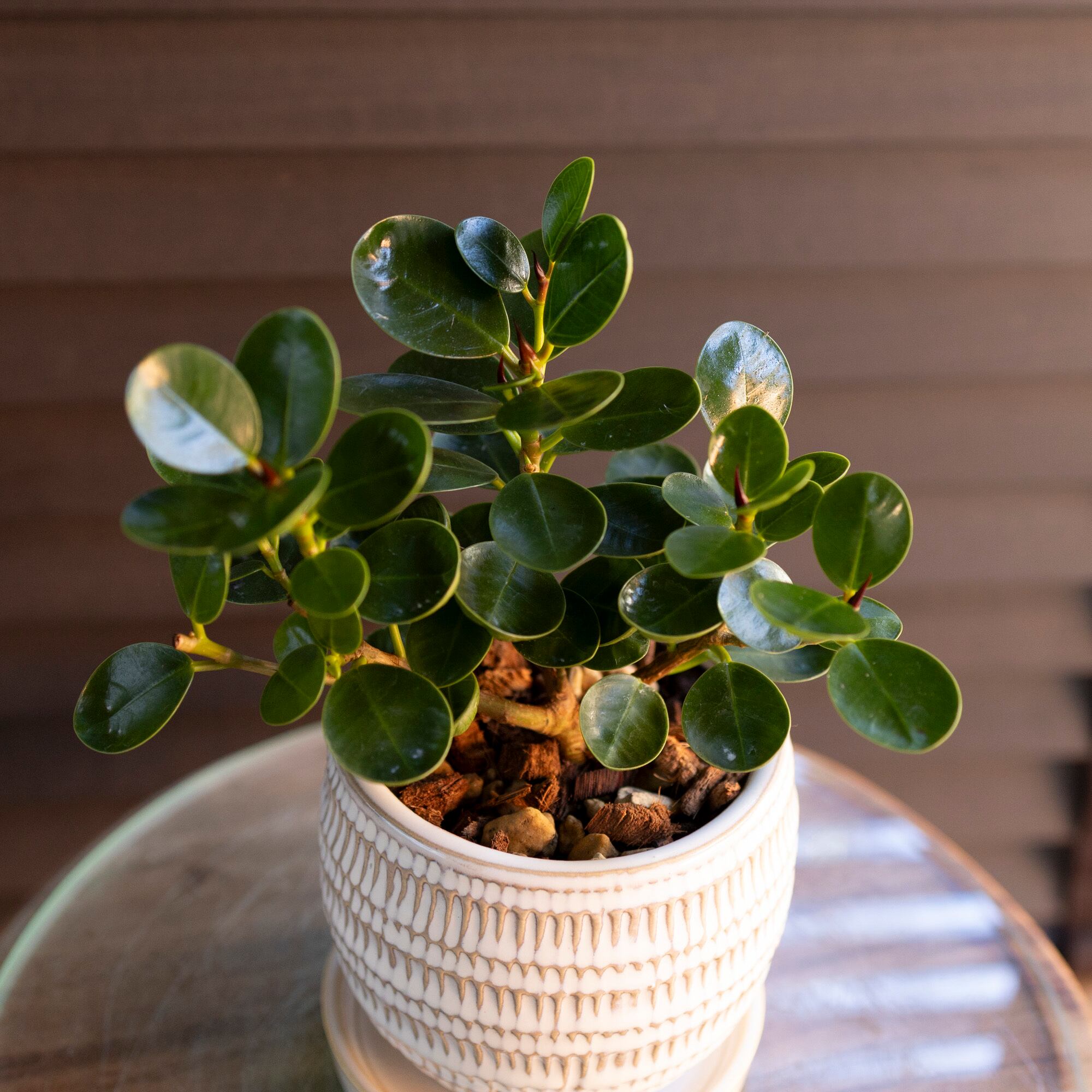 丸くかわいい葉っぱが、風水ではリラックス効果があると期待されます。