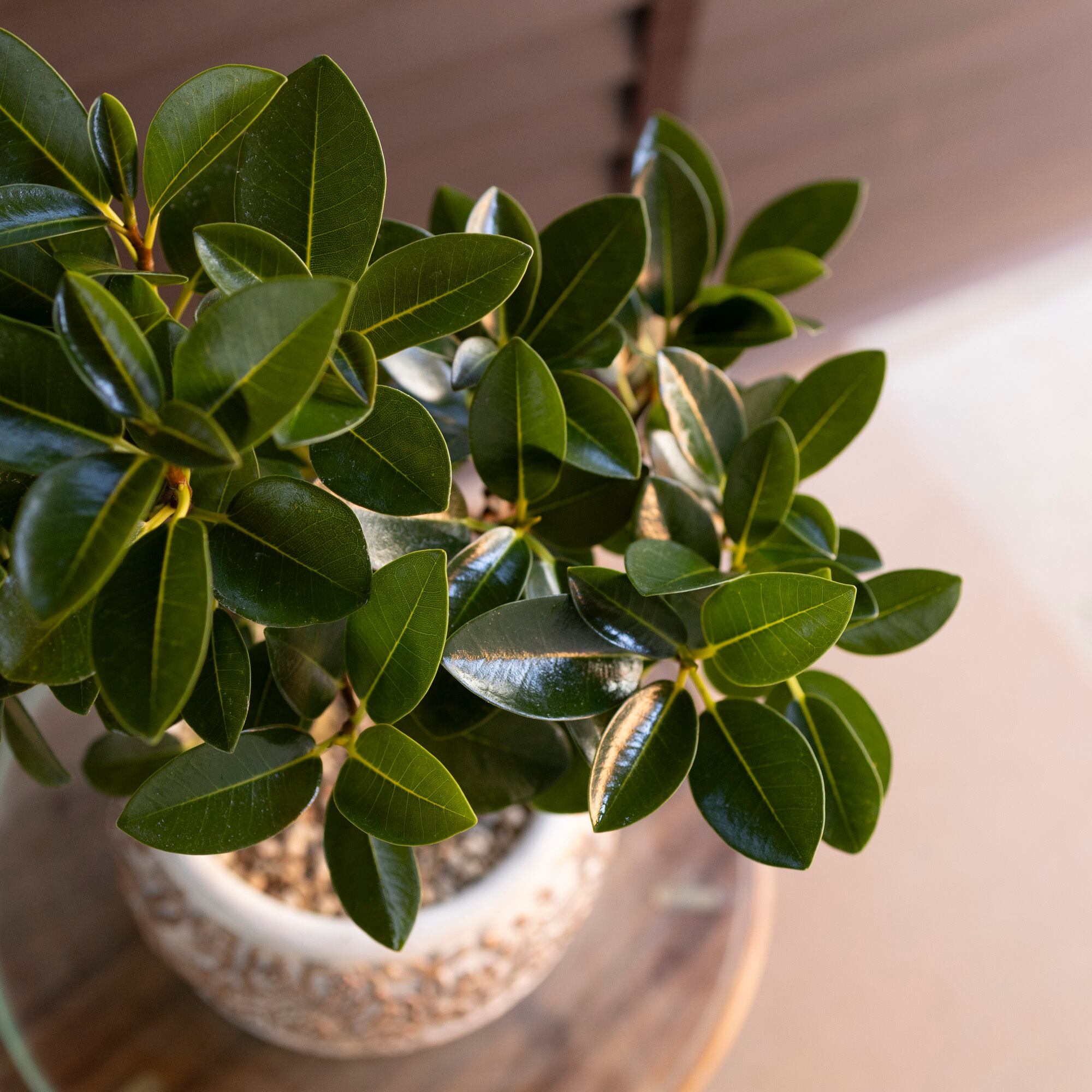 ルビギノーサはゴムの木の仲間で、丈夫で5度ぐらいまで耐えられるほどの耐寒性があります。初めてインテリアグリーンを購入する方にも育てやすい植物です。