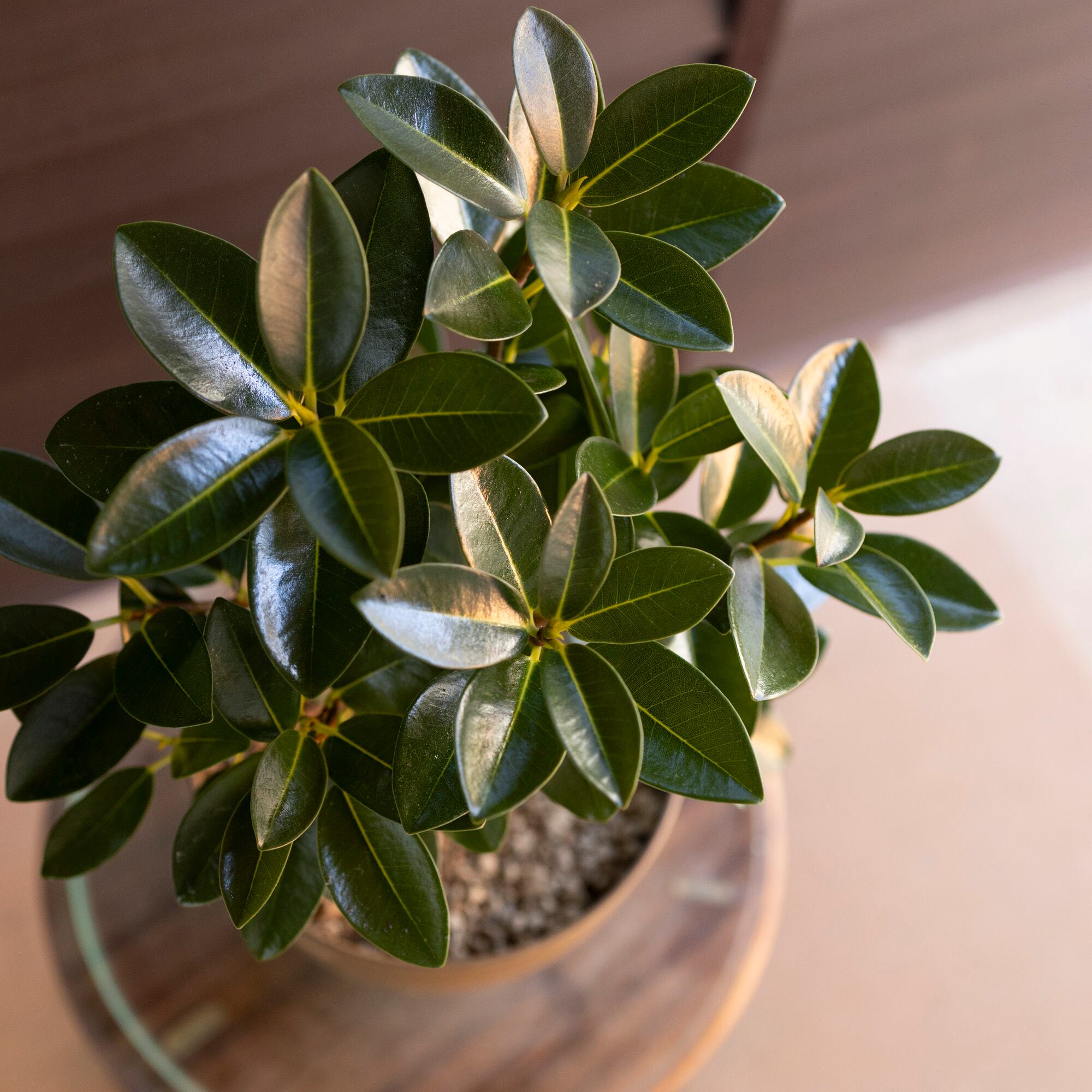ルビギノーサはゴムの木の仲間で、丈夫で5度ぐらいまで耐えられるほどの耐寒性があります。初めてインテリアグリーンを購入する方にも育てやすい植物です。