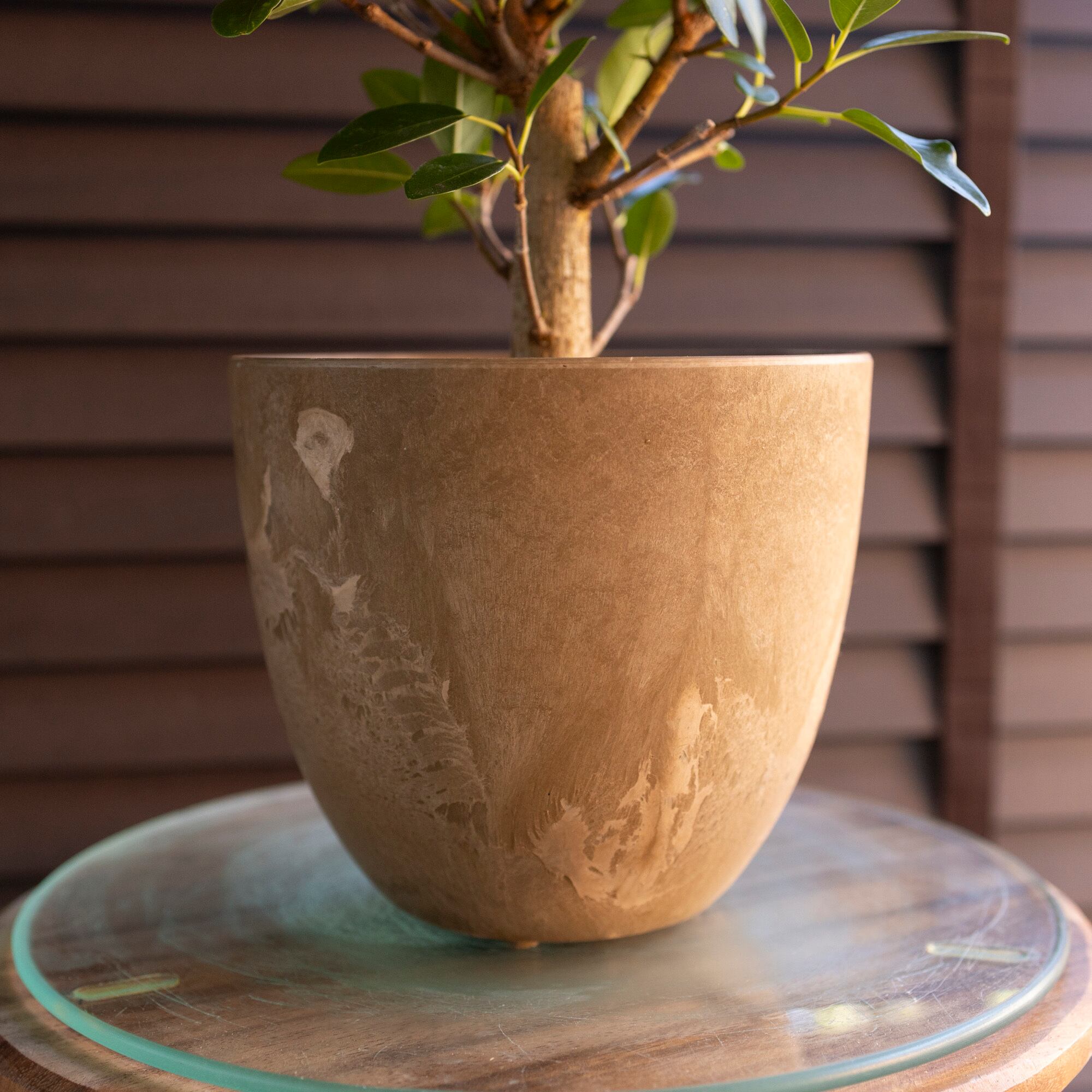 幹太の原木から盆栽風に仕立てた逸品です。肉厚で光沢の美しい状態を保つためには、室内のよく日が当たる場所で管理して下さい。