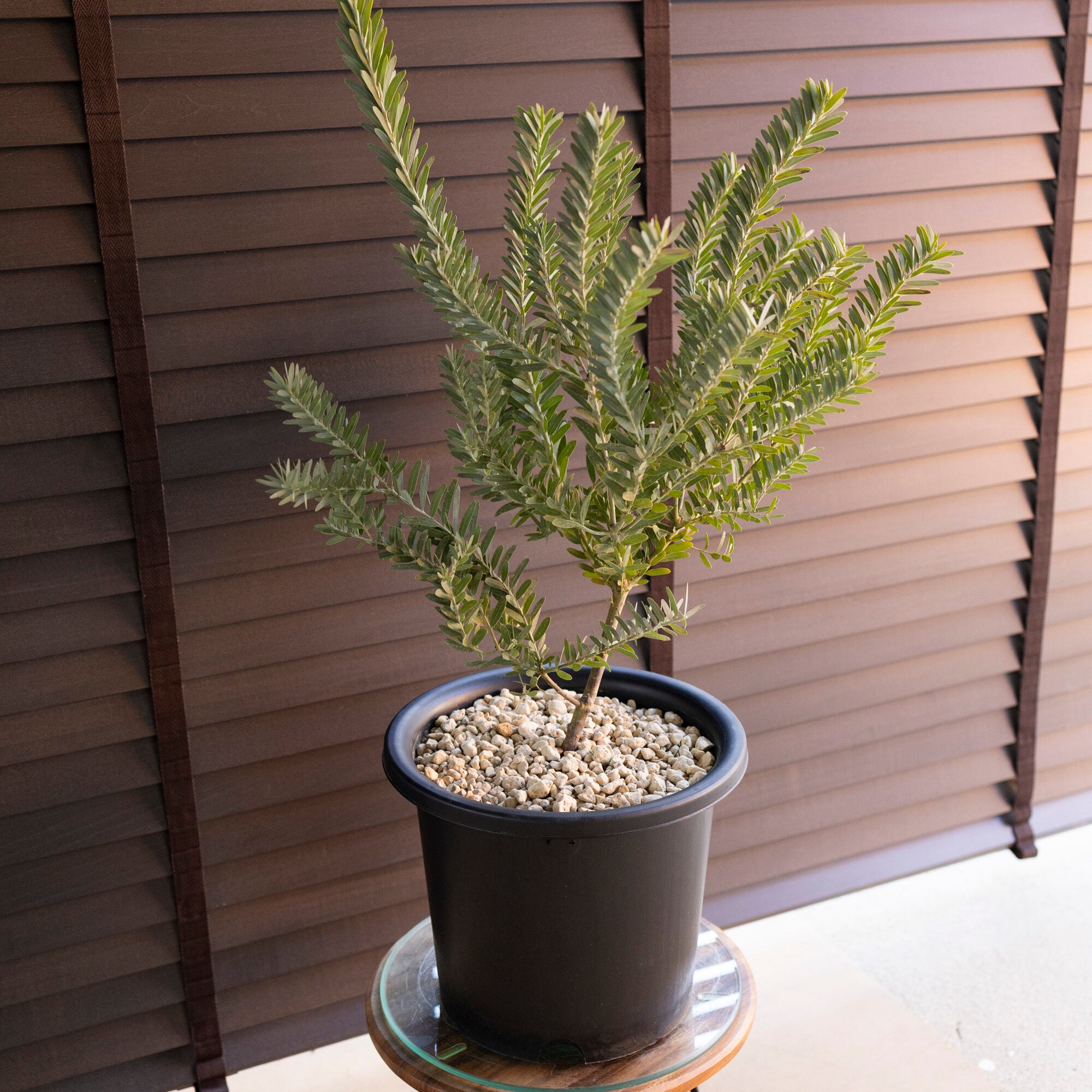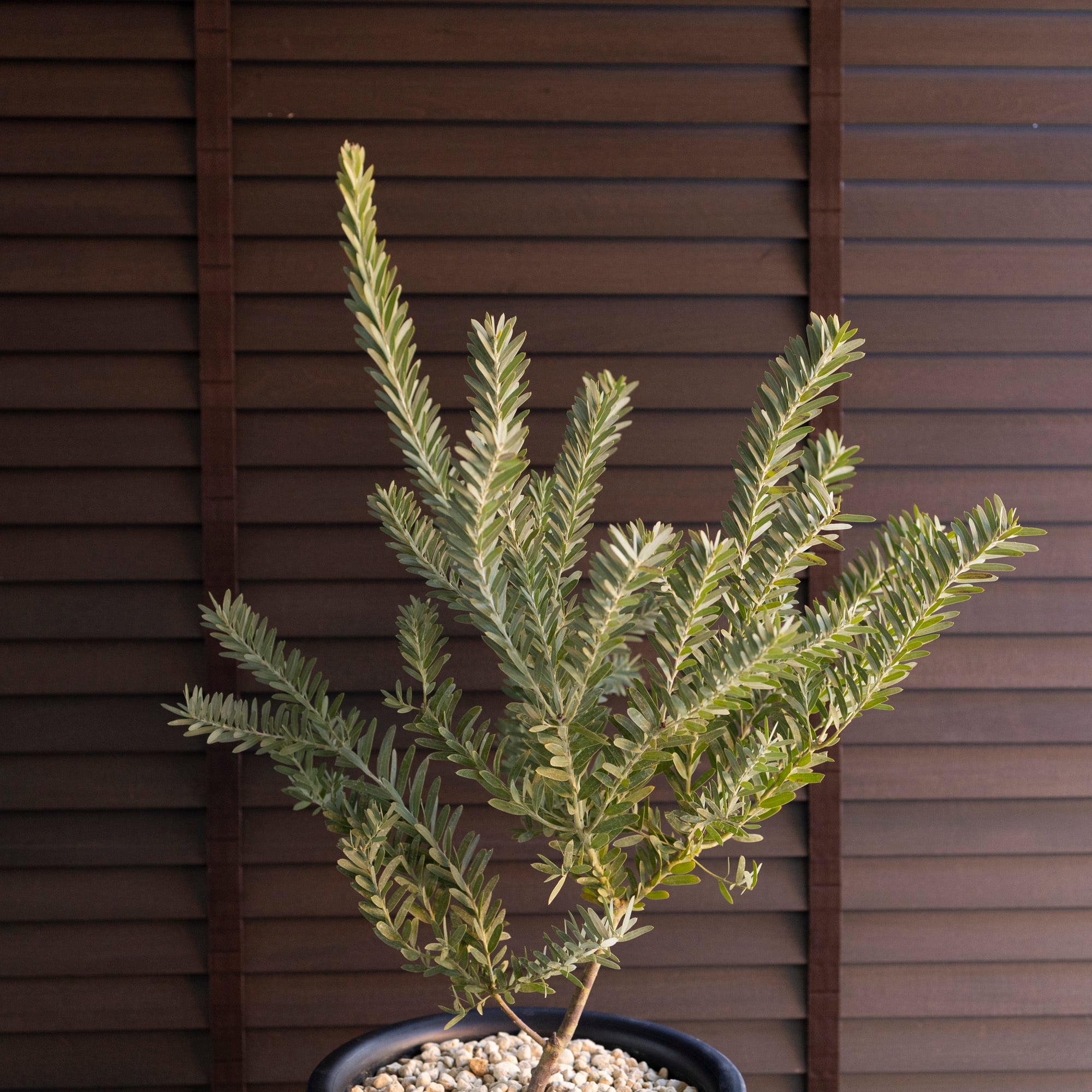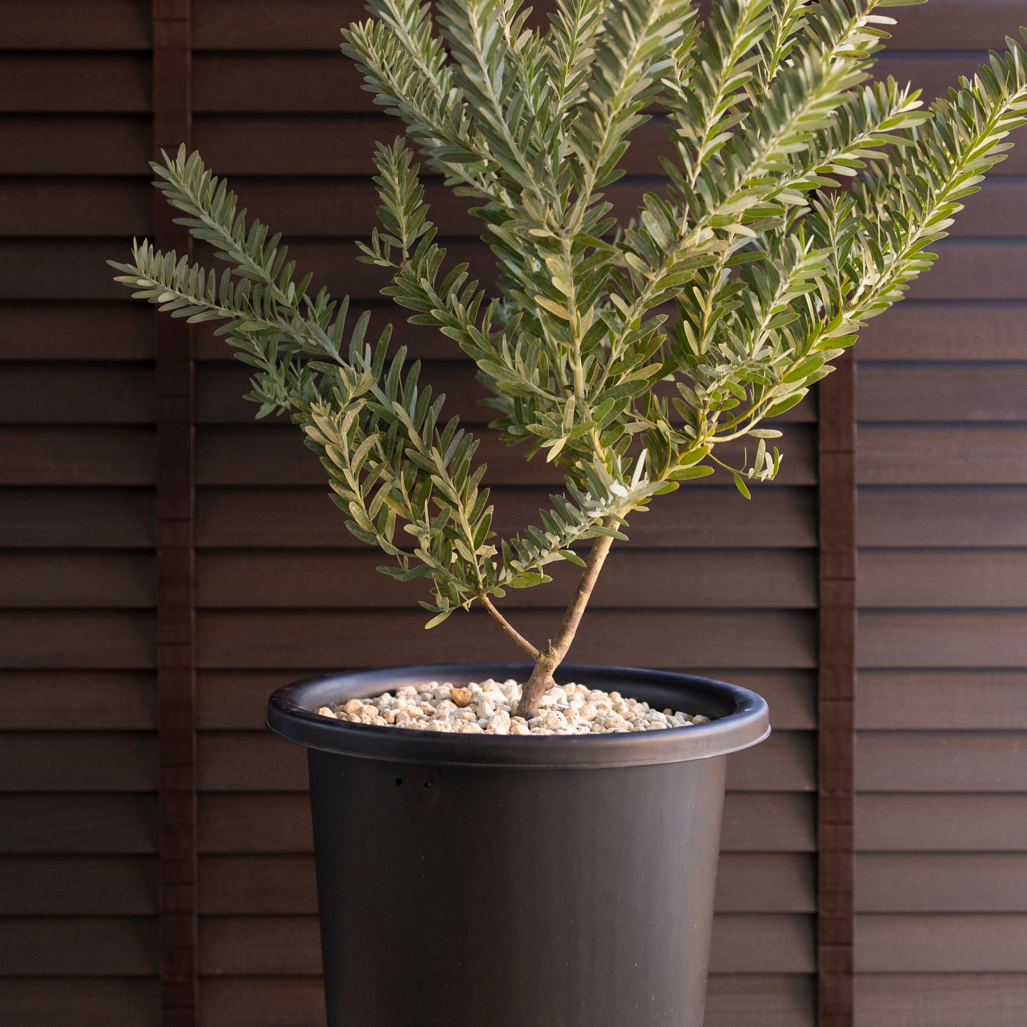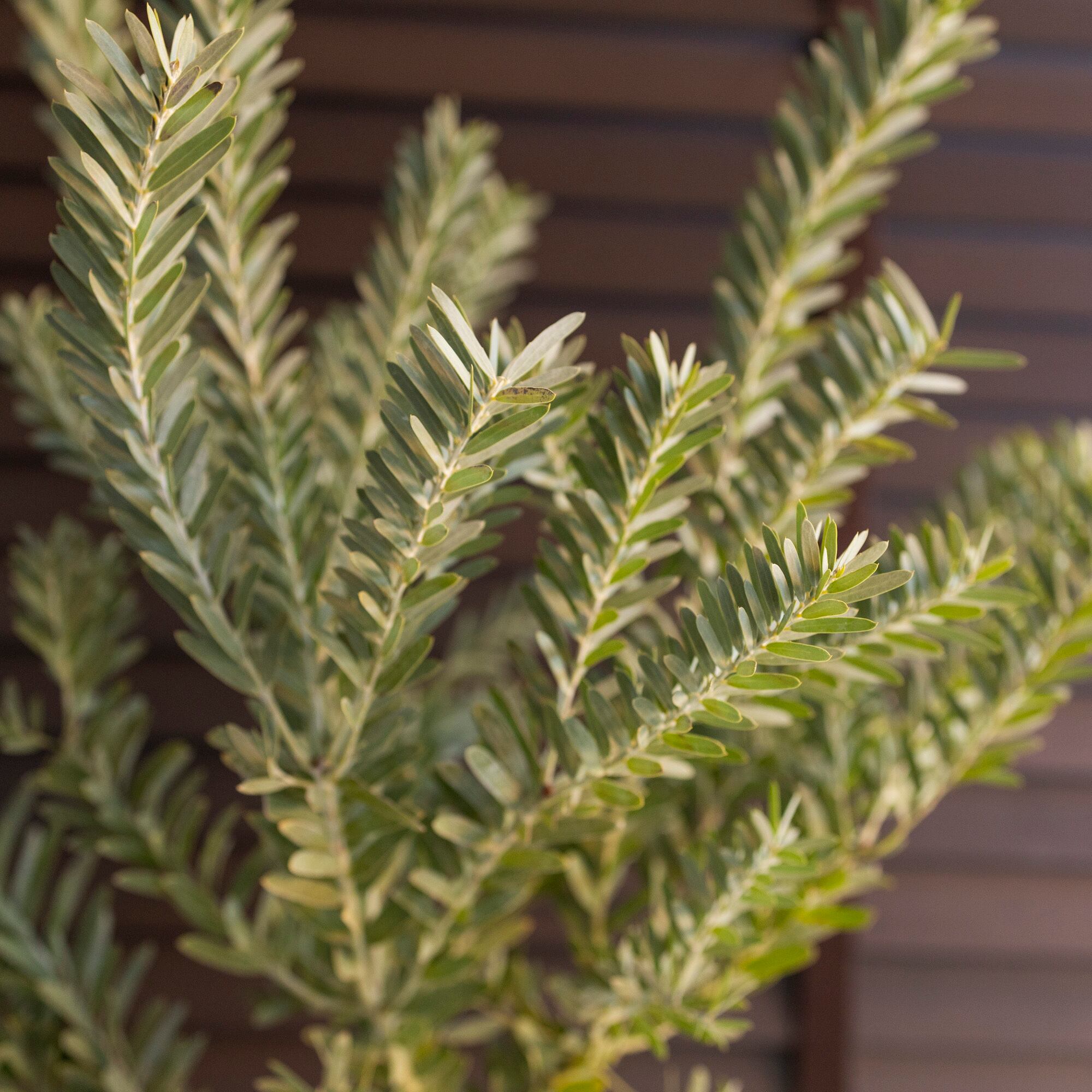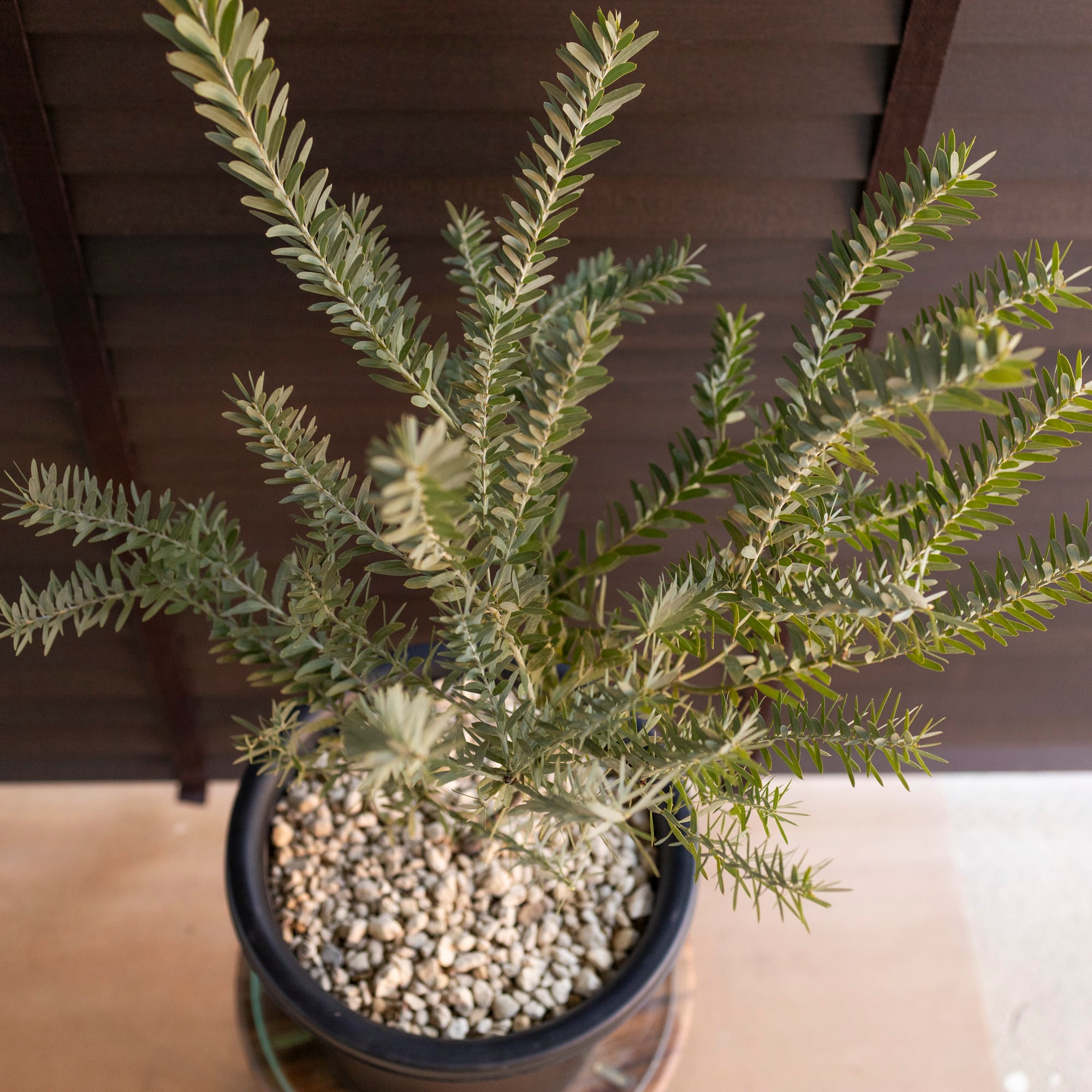 青みがかった美しい葉色と春に咲く明るい黄色の花が魅力的なアカシアブルーブッシュ。