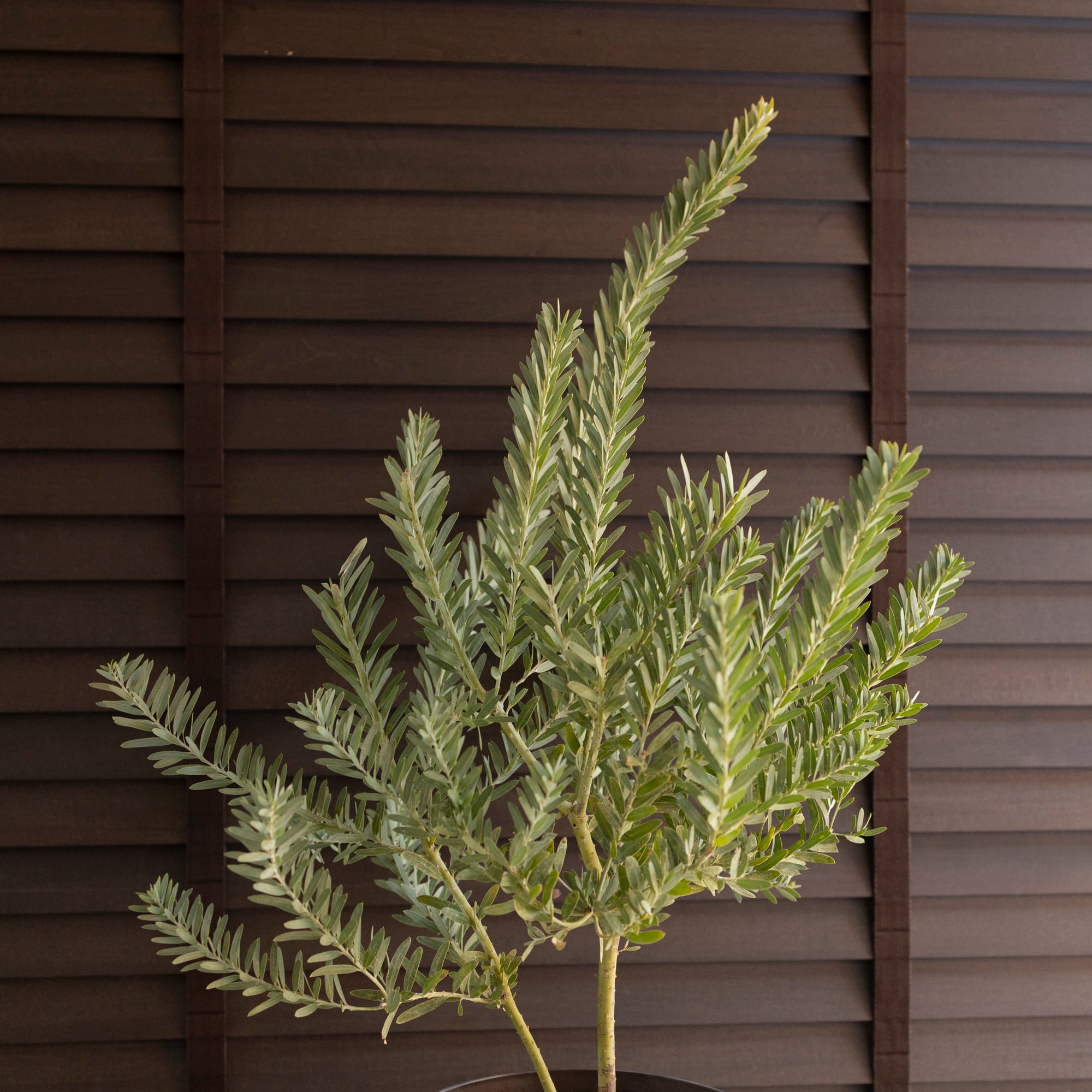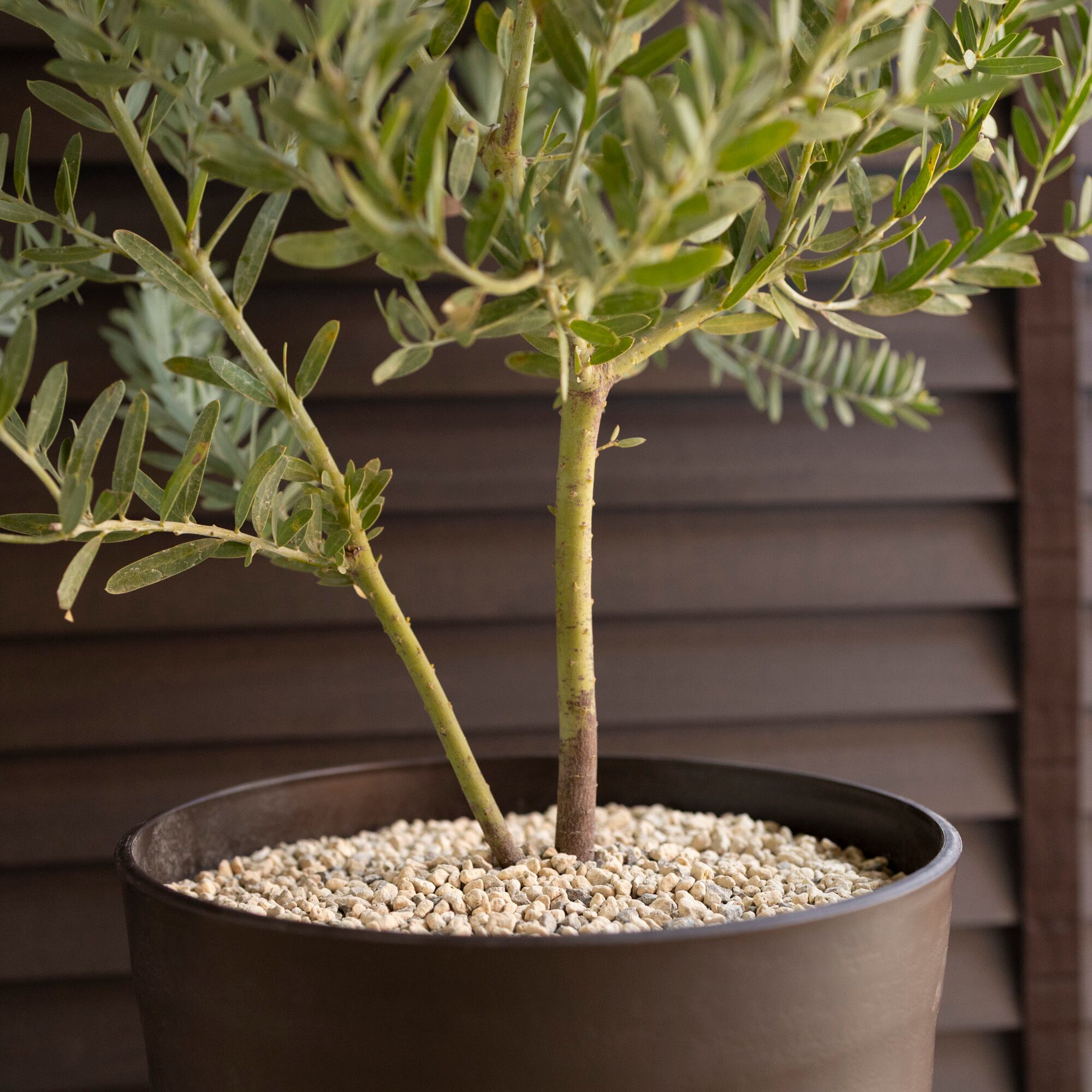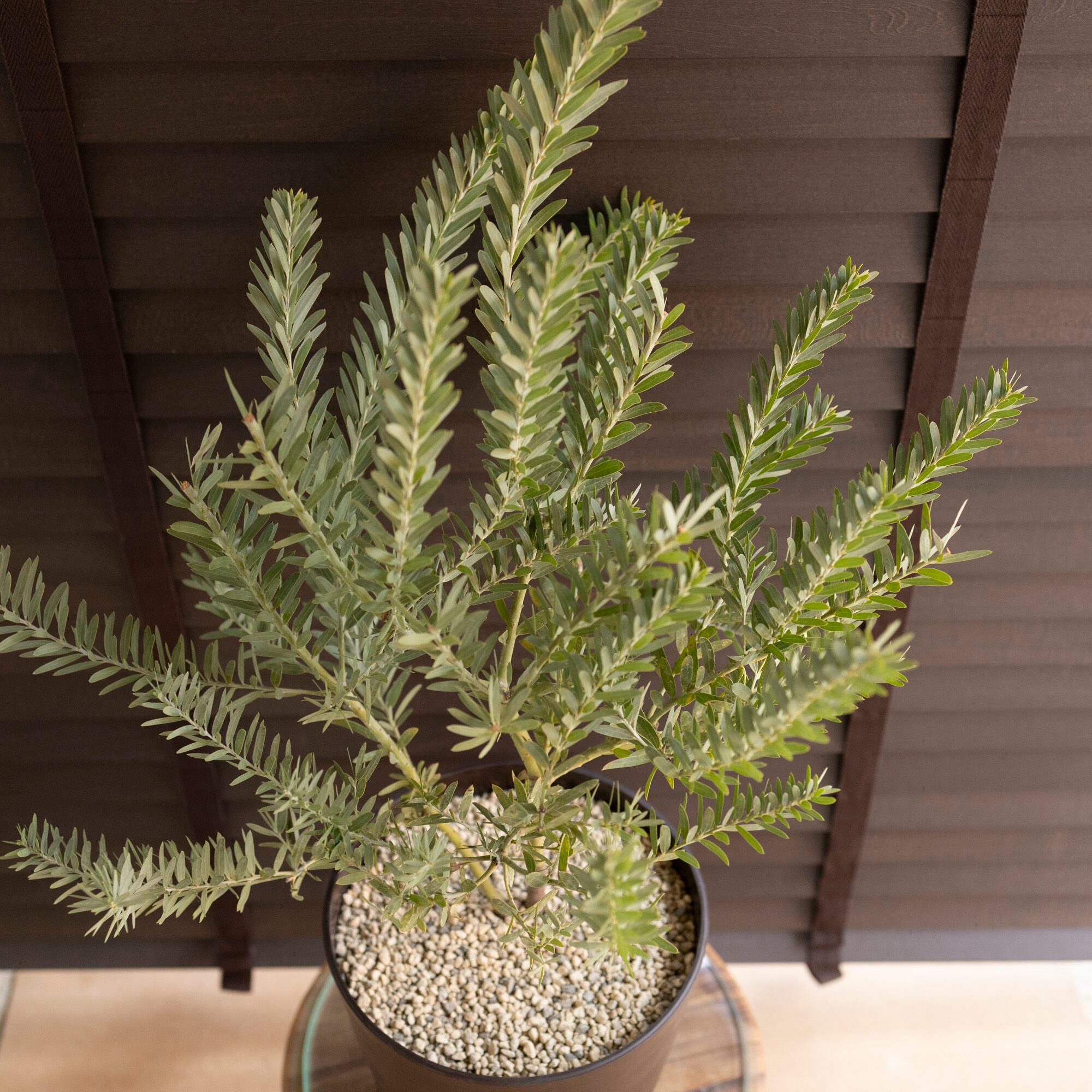 青みがかった美しい葉色と春に咲く明るい黄色の花が魅力的なアカシアブルーブッシュ。