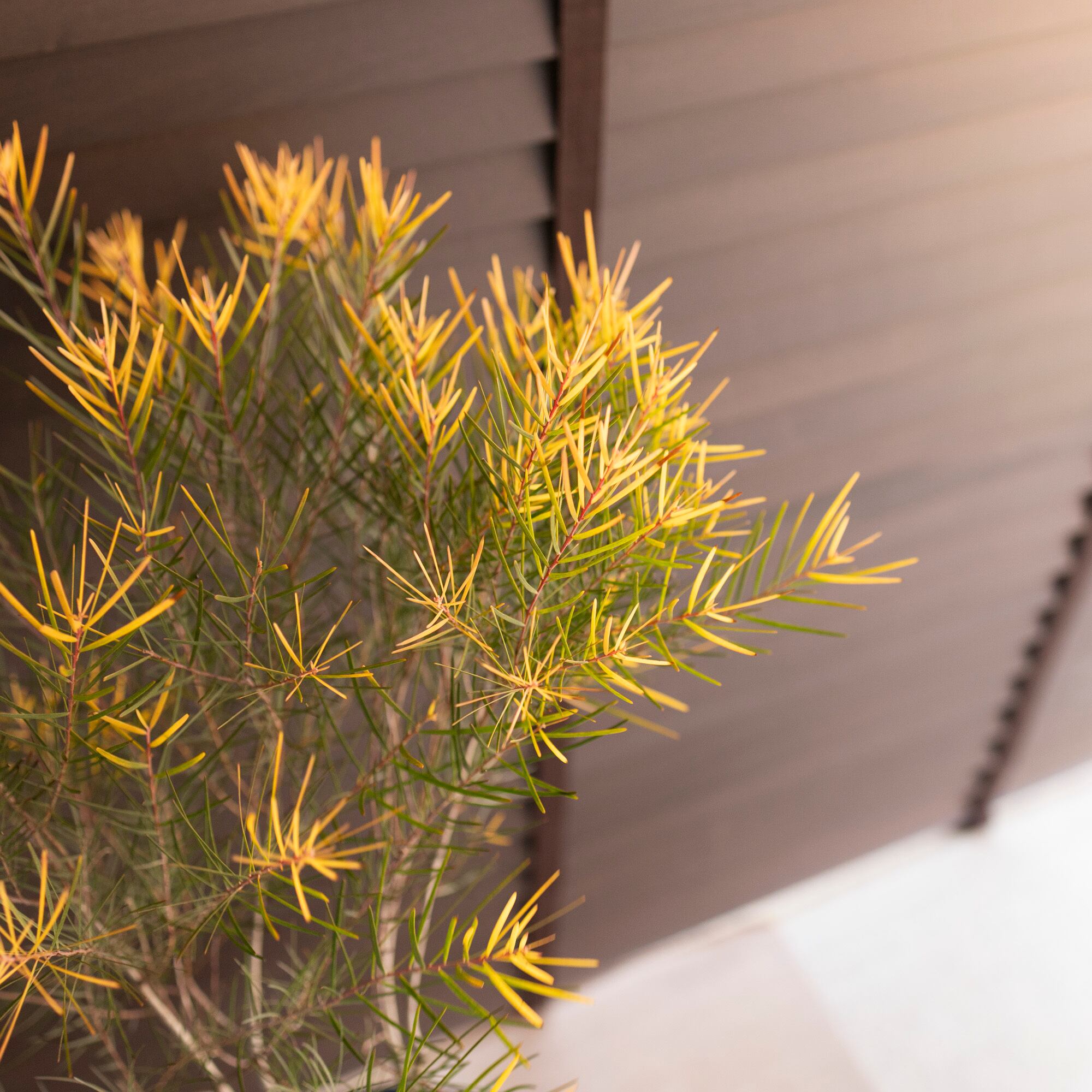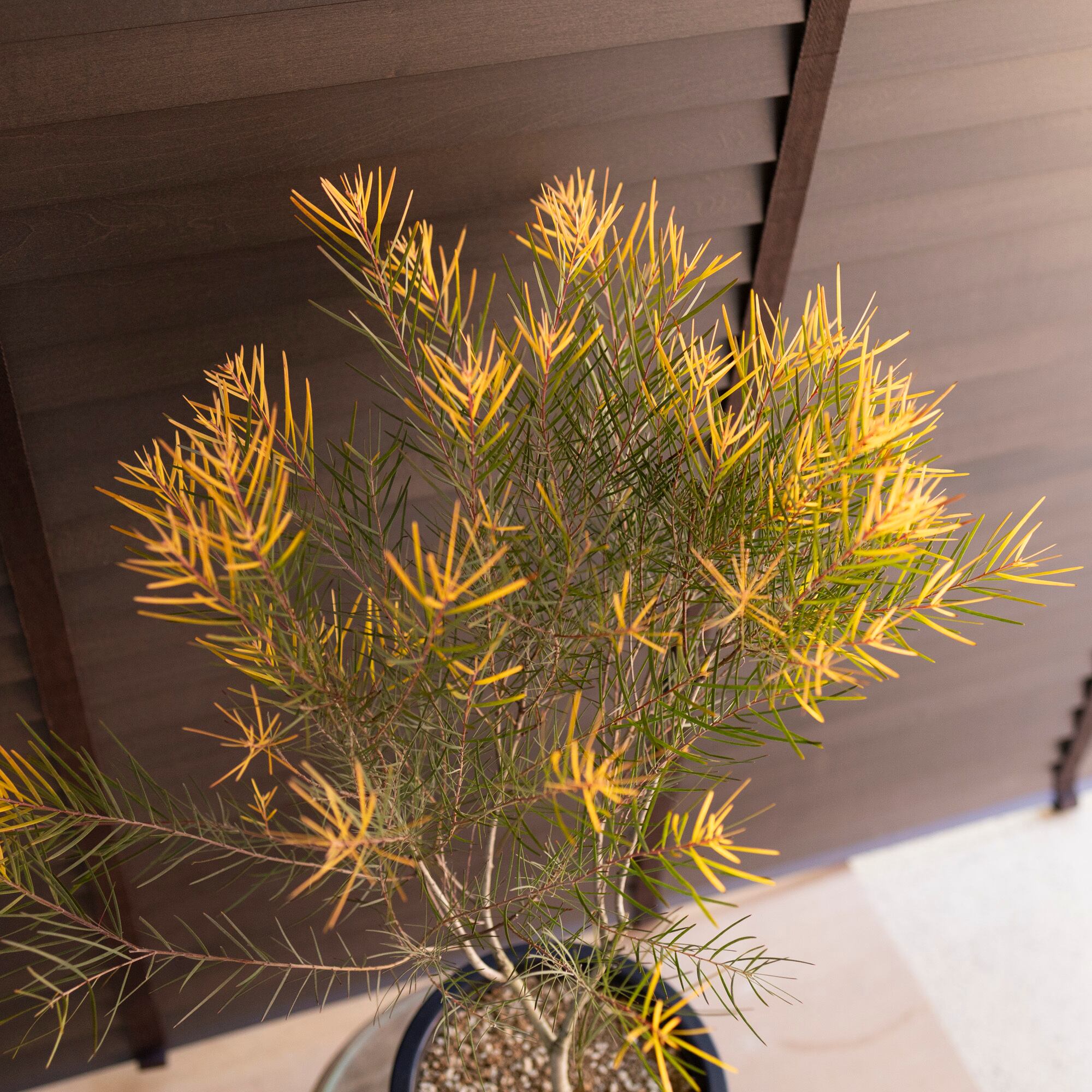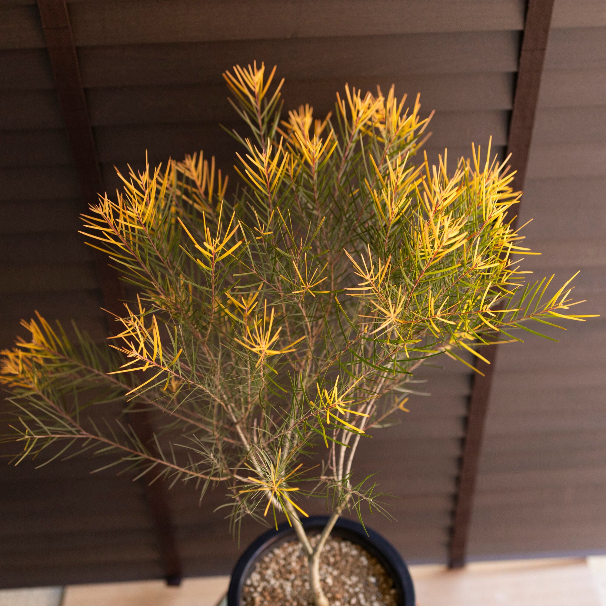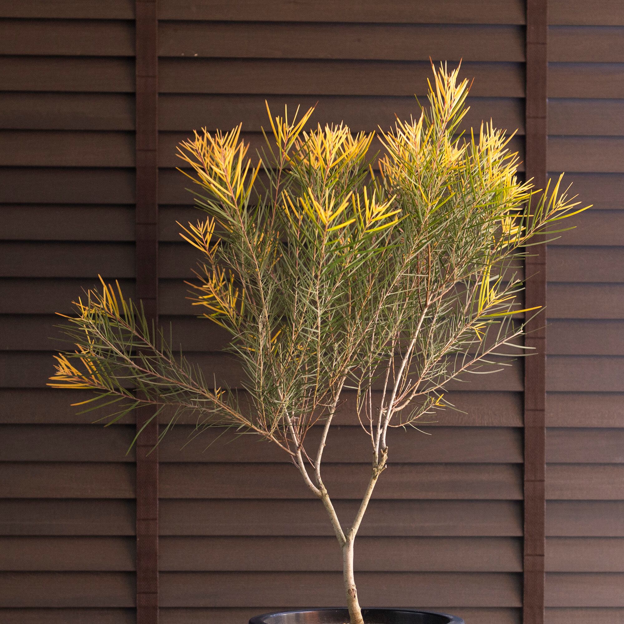 発色のいいゴールドに色づく葉っぱが美しく、落葉しないので一年中楽しめます。
