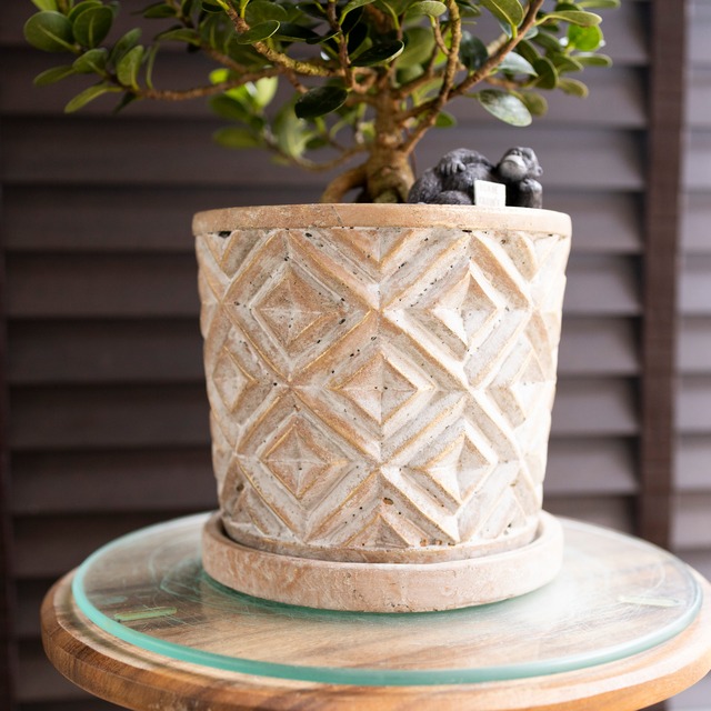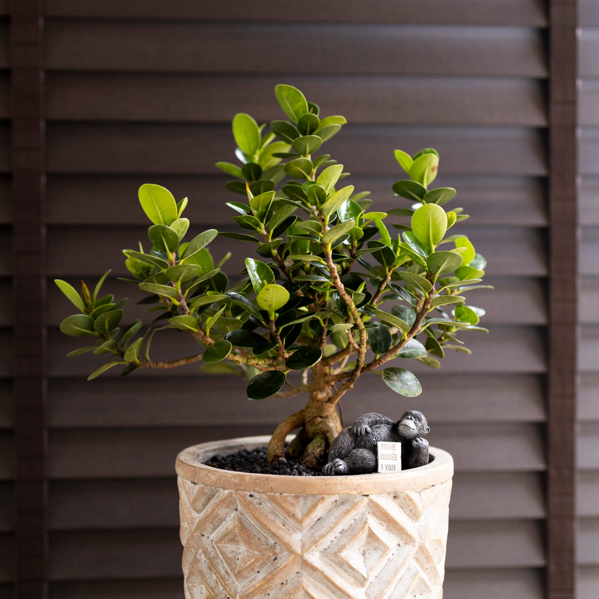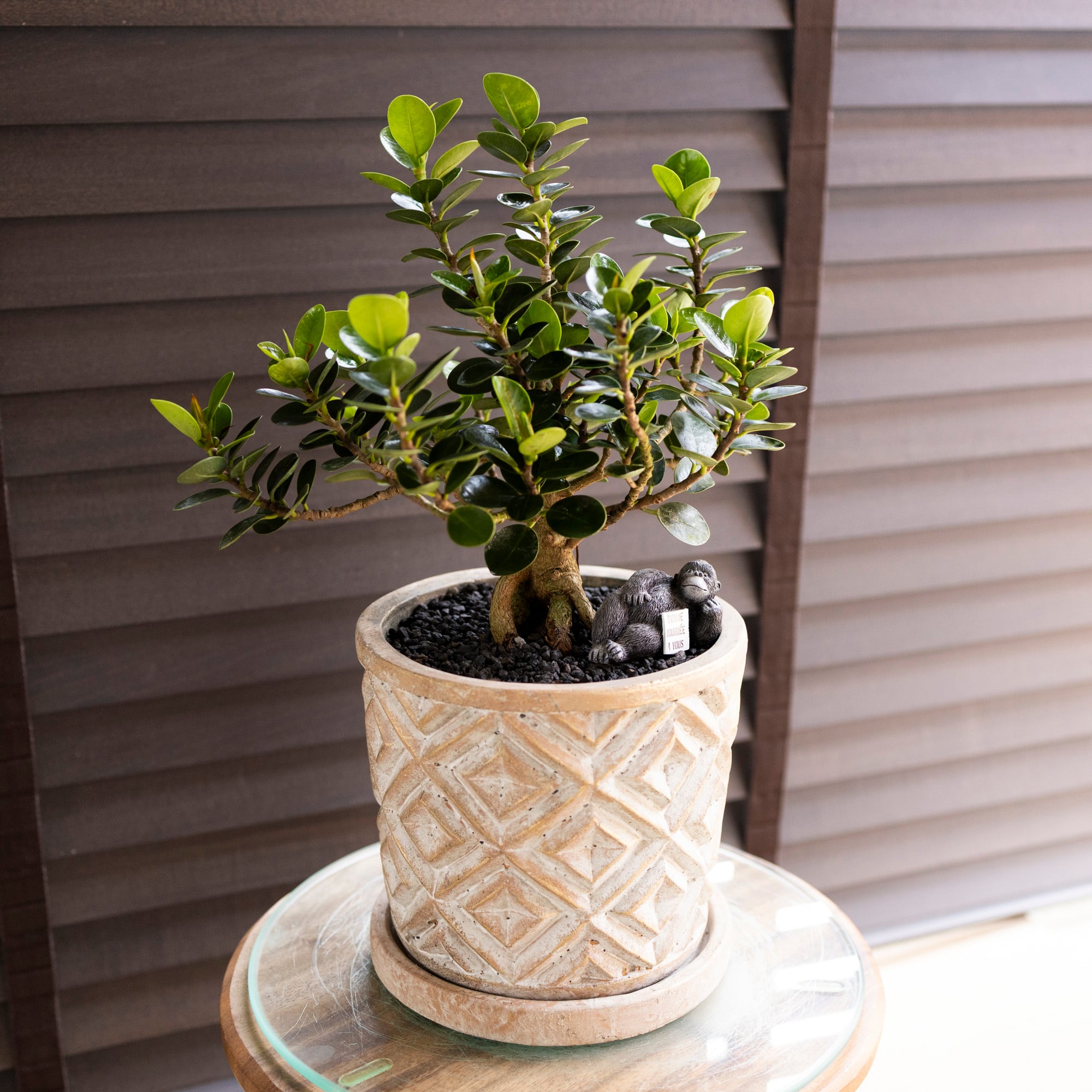 パンダガジュマル 6号 陶器鉢 ピック付 観葉植物 ガジュマルの木 多幸の木 ガジュマル 0313BE