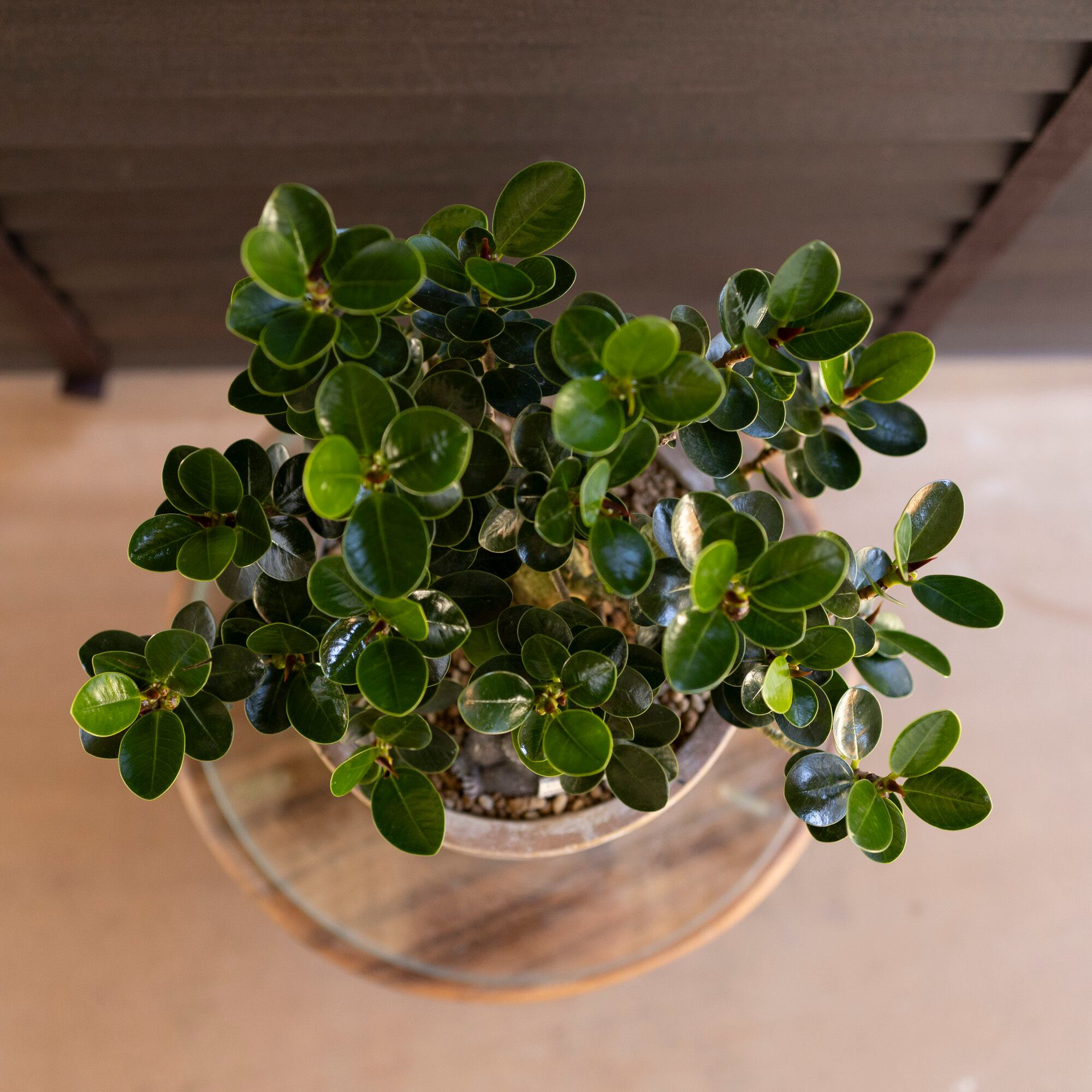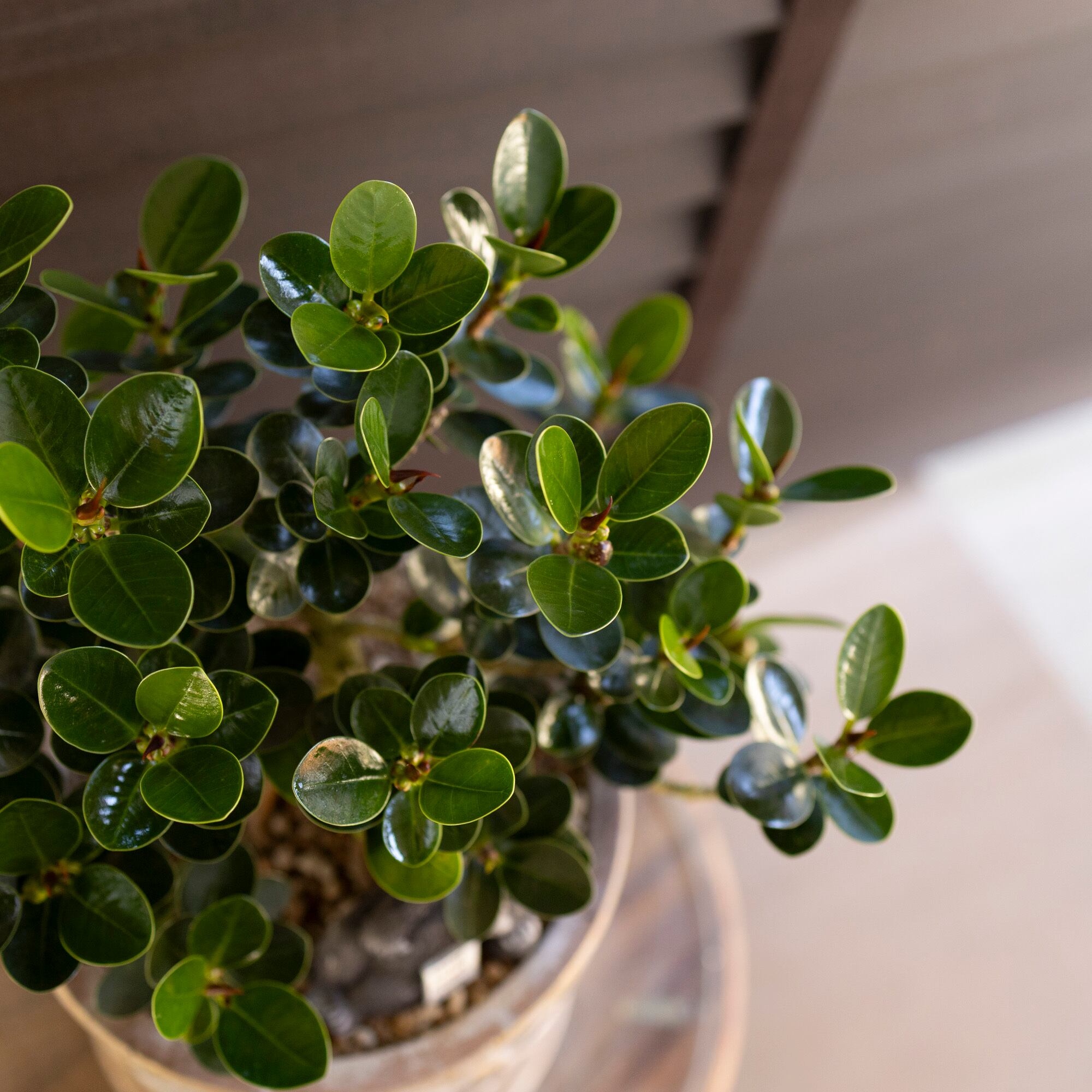 丸くかわいい葉っぱが、風水ではリラックス効果があると期待されます。