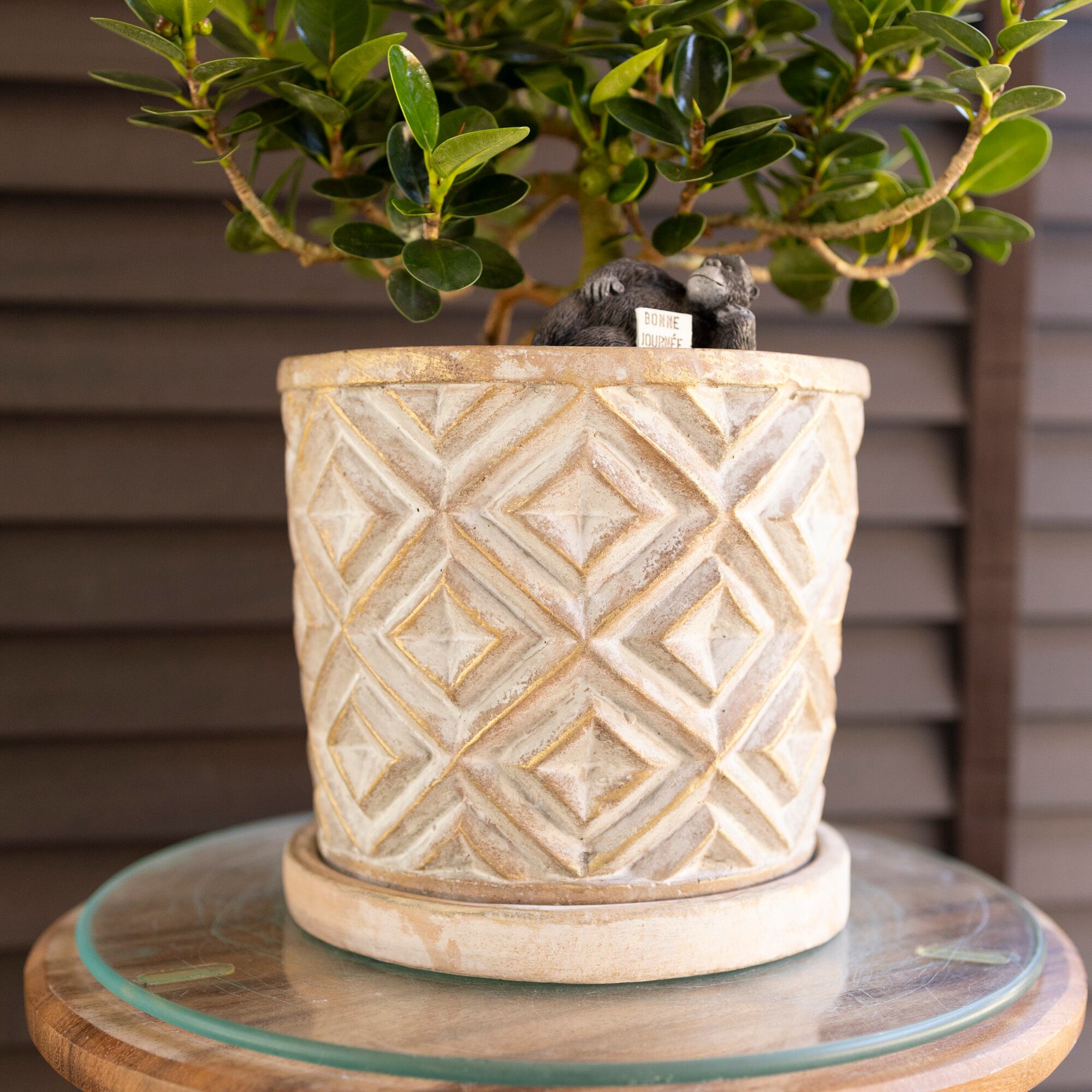 パンダガジュマル 6号 陶器鉢 ピック付 観葉植物 ガジュマルの木 多幸の木 ガジュマル 0415BE