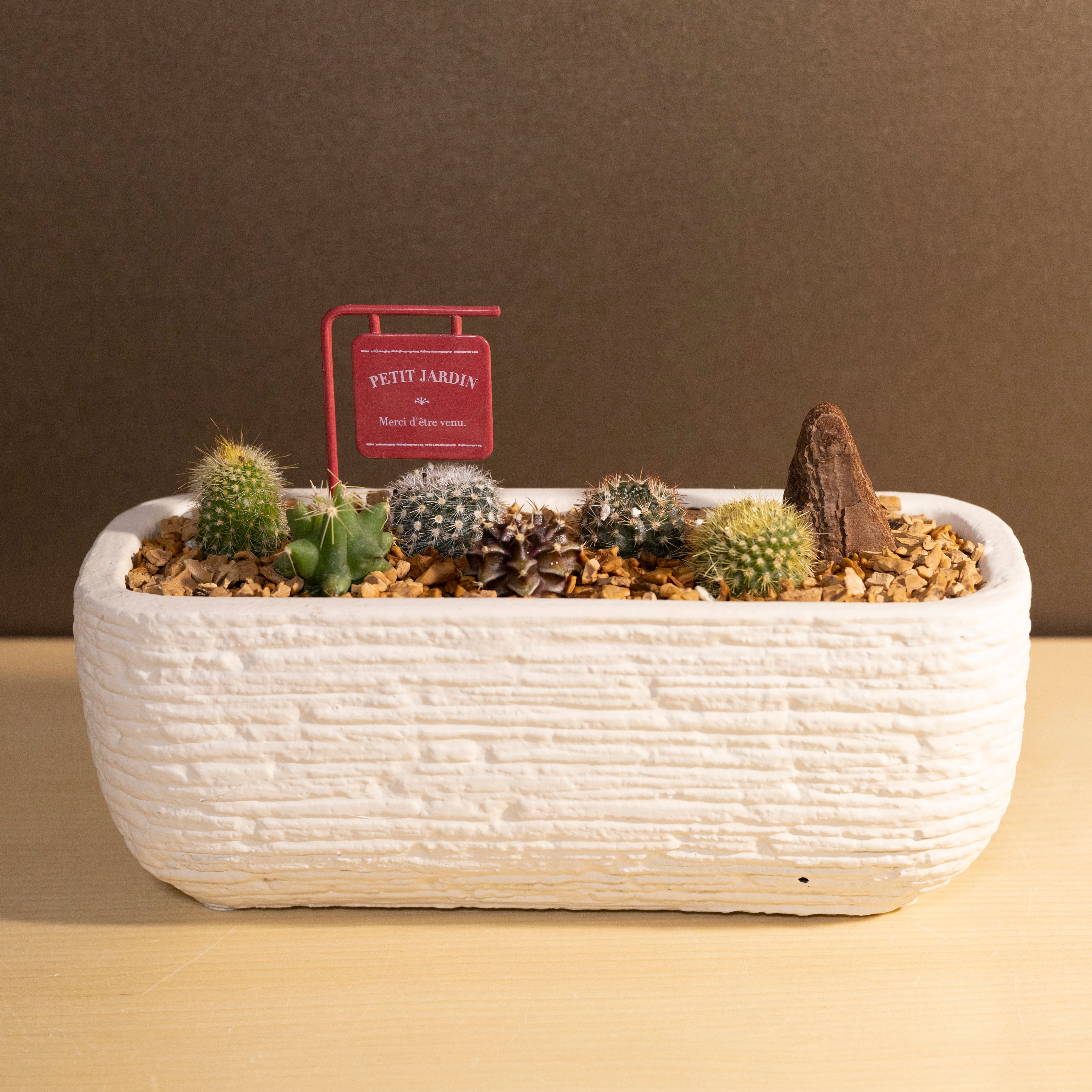 ミニサボテン公園 そのまま飾れる サボテン寄せ植え 箱庭 陶器鉢 ホワイト