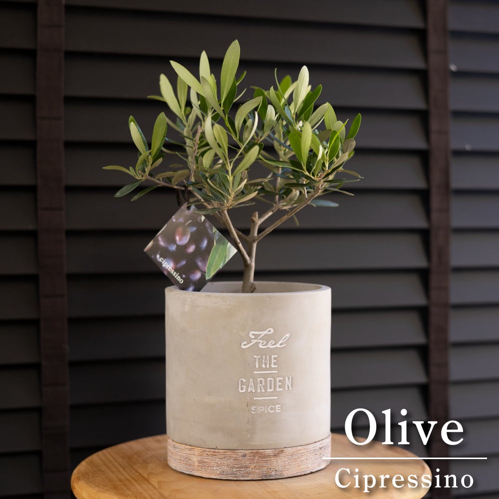 チプレシーノ(Cipressino)は、イタリア原産のオリーブの品種で、太い幹が伸びコンパクトに樹形がまとまりやすい。