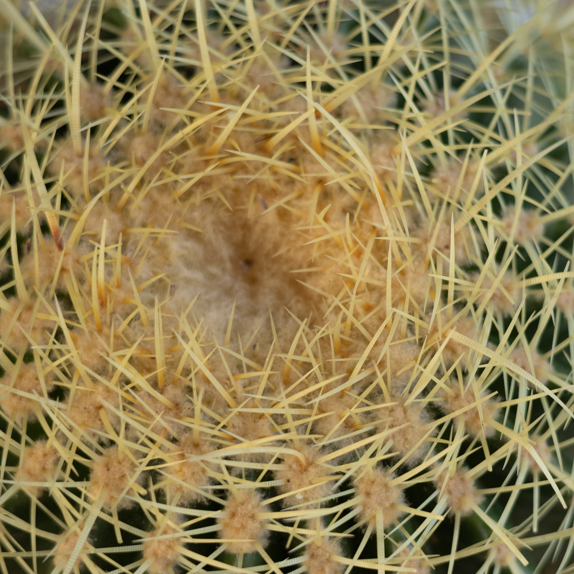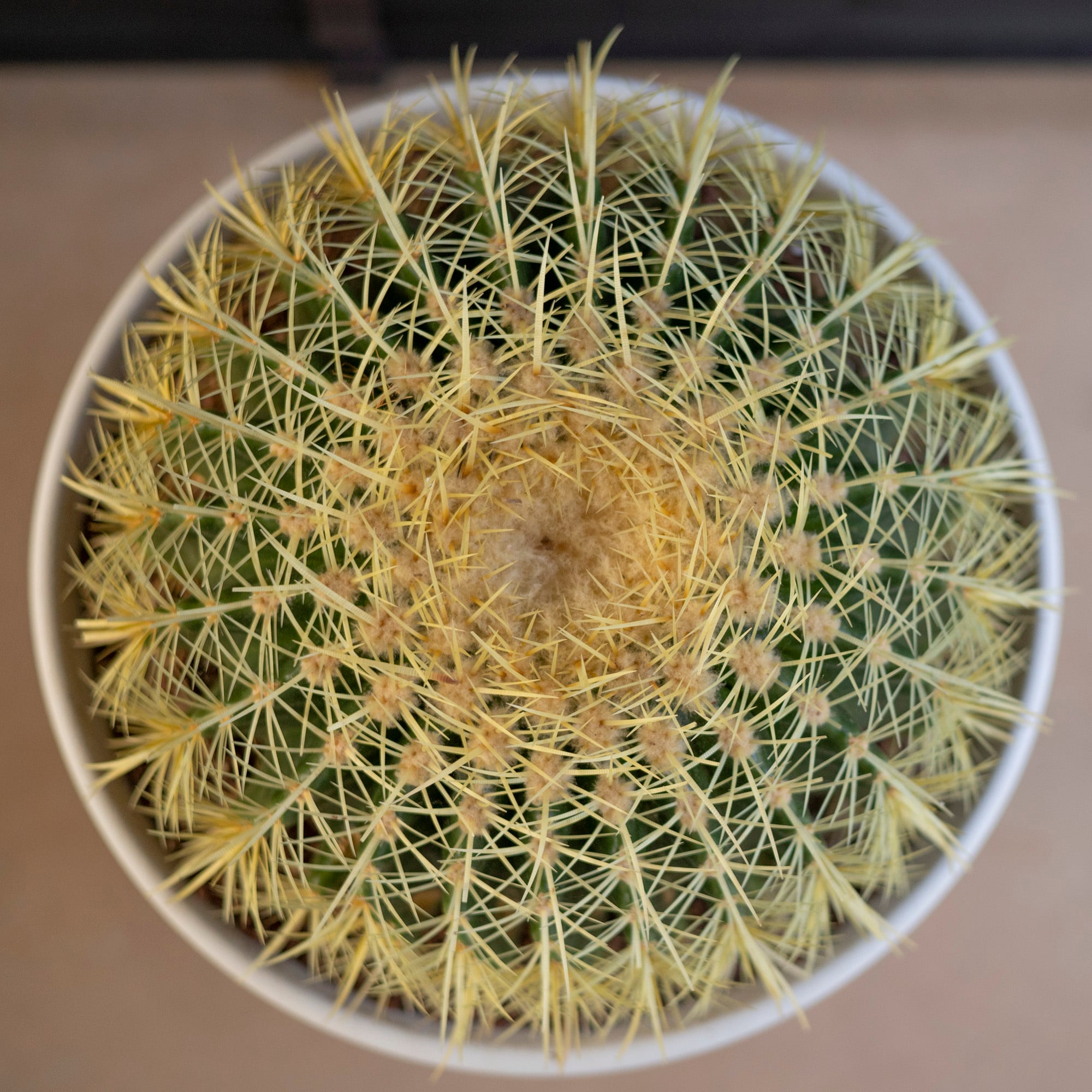 Echinocactus grusoniiという名の品種で黄金色の鋭いトゲで覆われているのが特徴的。