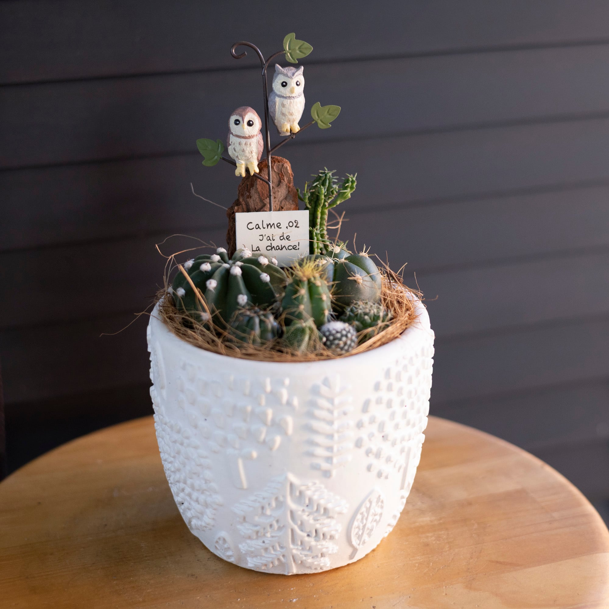 ミニサボテンとふくろのピックを寄せ植えにしてみました。