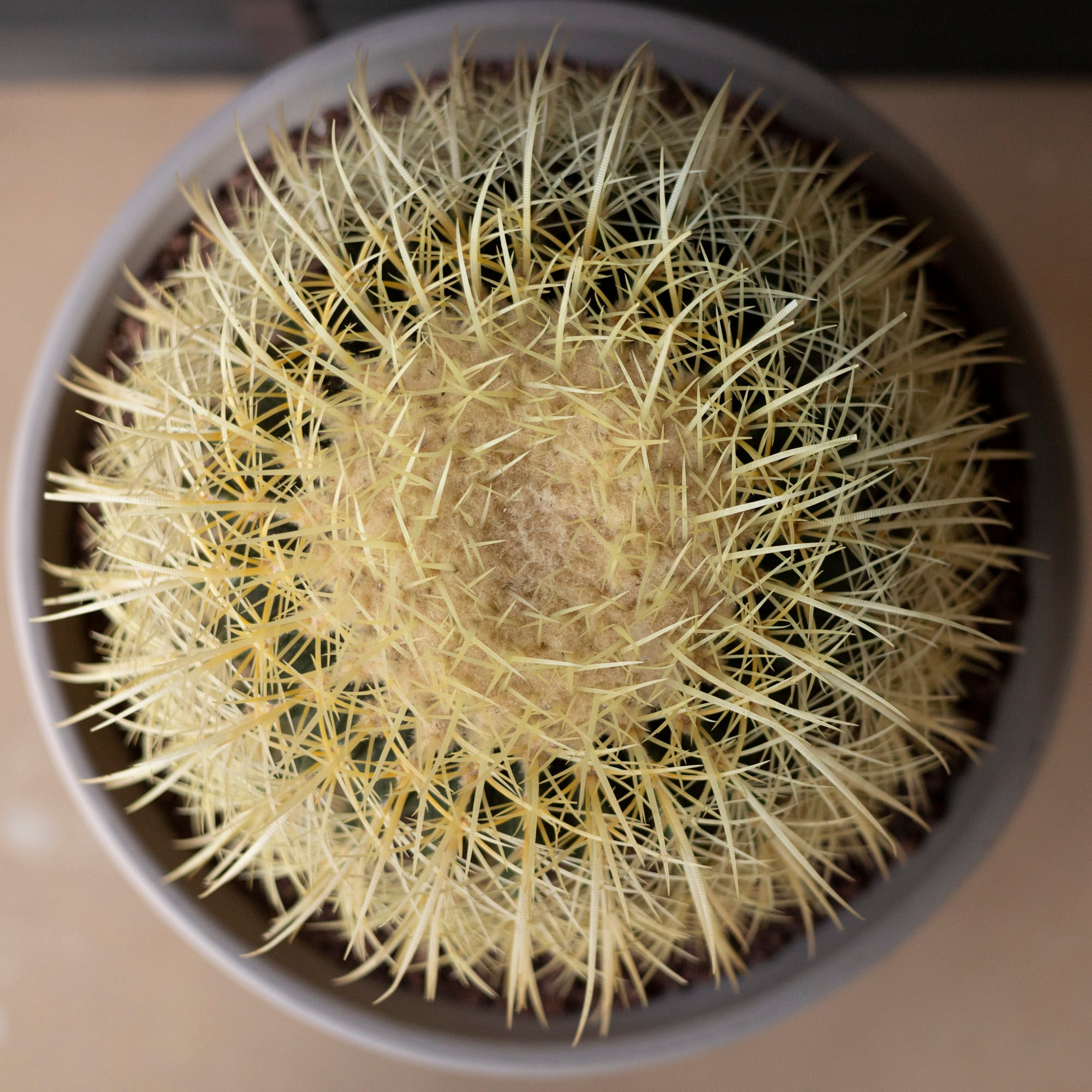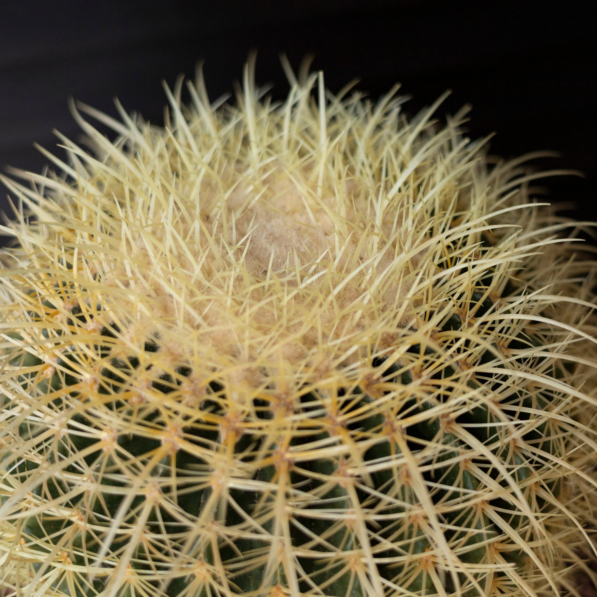 Echinocactus grusoniiという名の品種で黄金色の鋭いトゲで覆われているのが特徴的。