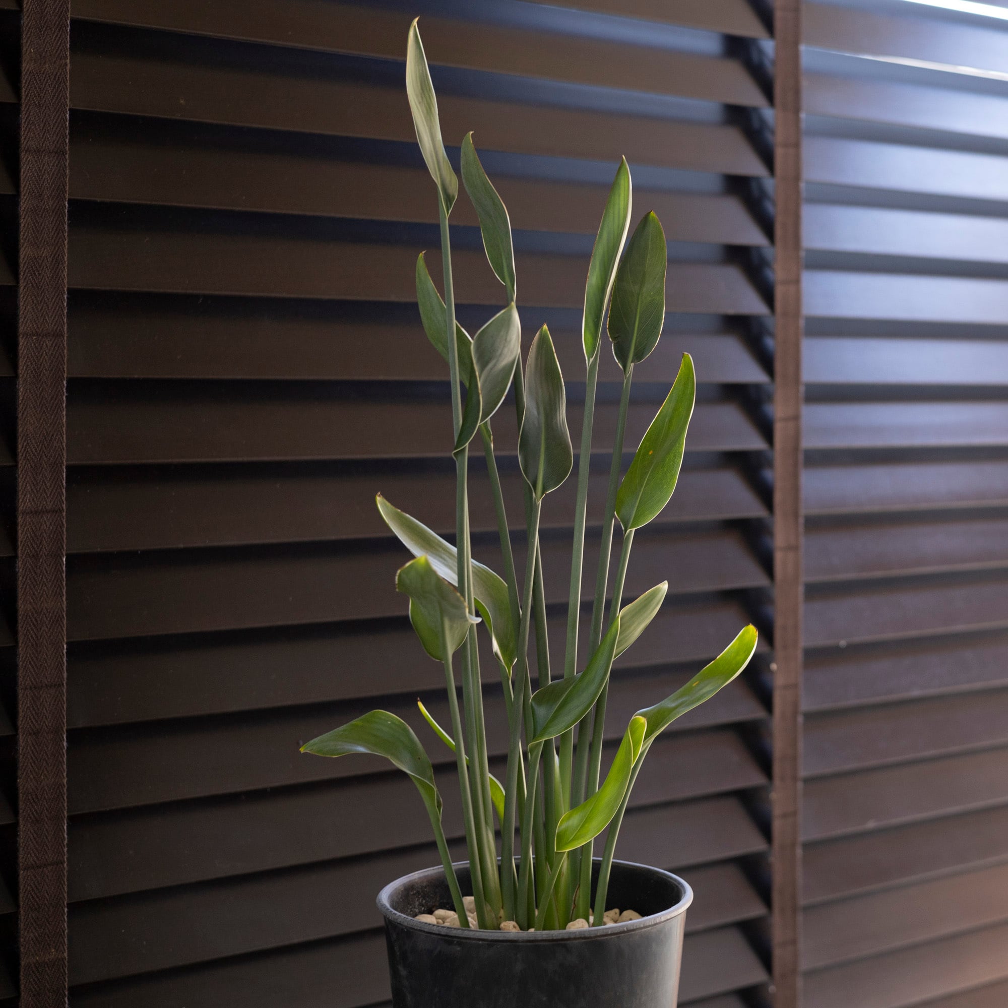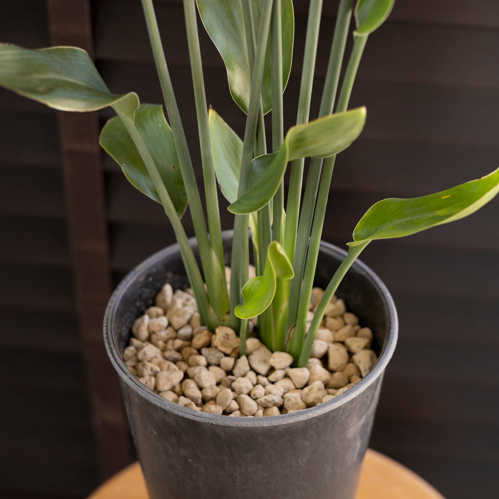 極楽鳥花=ストレリチアの仲間で、葉が小さいことからノンリーフと呼ばれる。乾燥に強く丈夫。育てやすくおススメの逸品。
