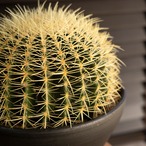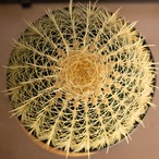 Echinocactus grusoniiという名の品種で黄金色の鋭いトゲで覆われているのが特徴的。