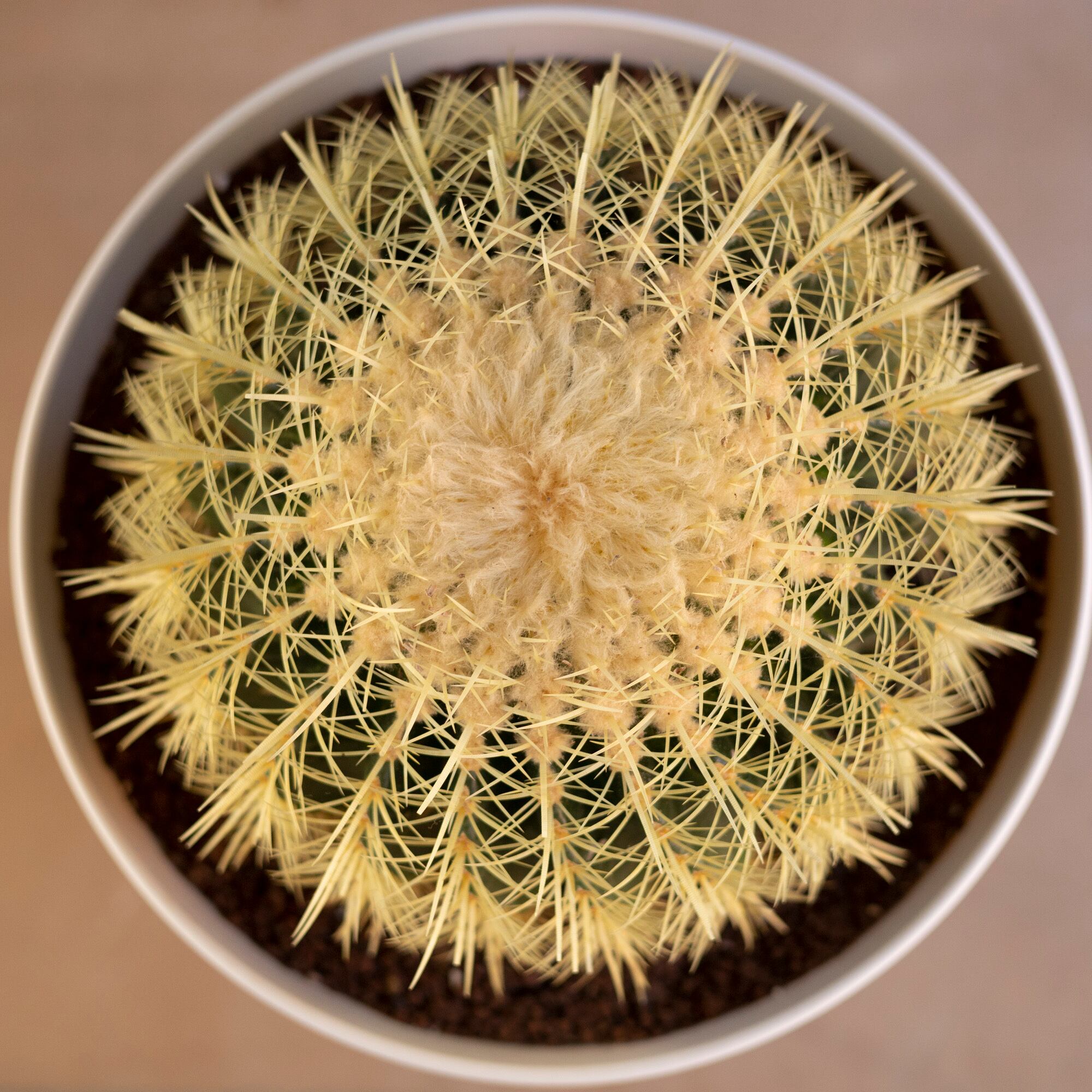 Echinocactus grusoniiという名の品種で黄金色の鋭いトゲで覆われているのが特徴的。