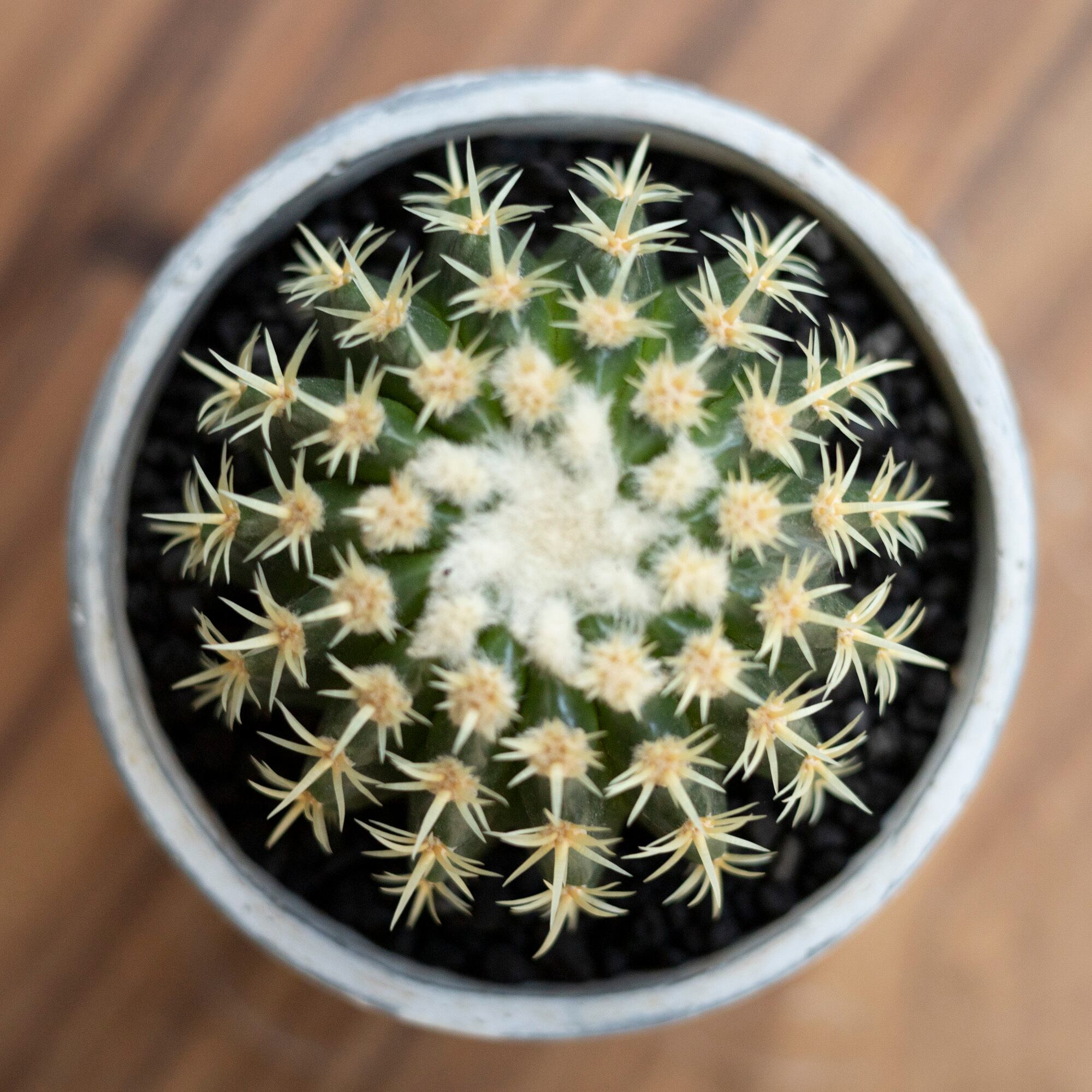 Echinocactus grusoniiという名の品種で黄金色の鋭いトゲで覆われているのが特徴的。