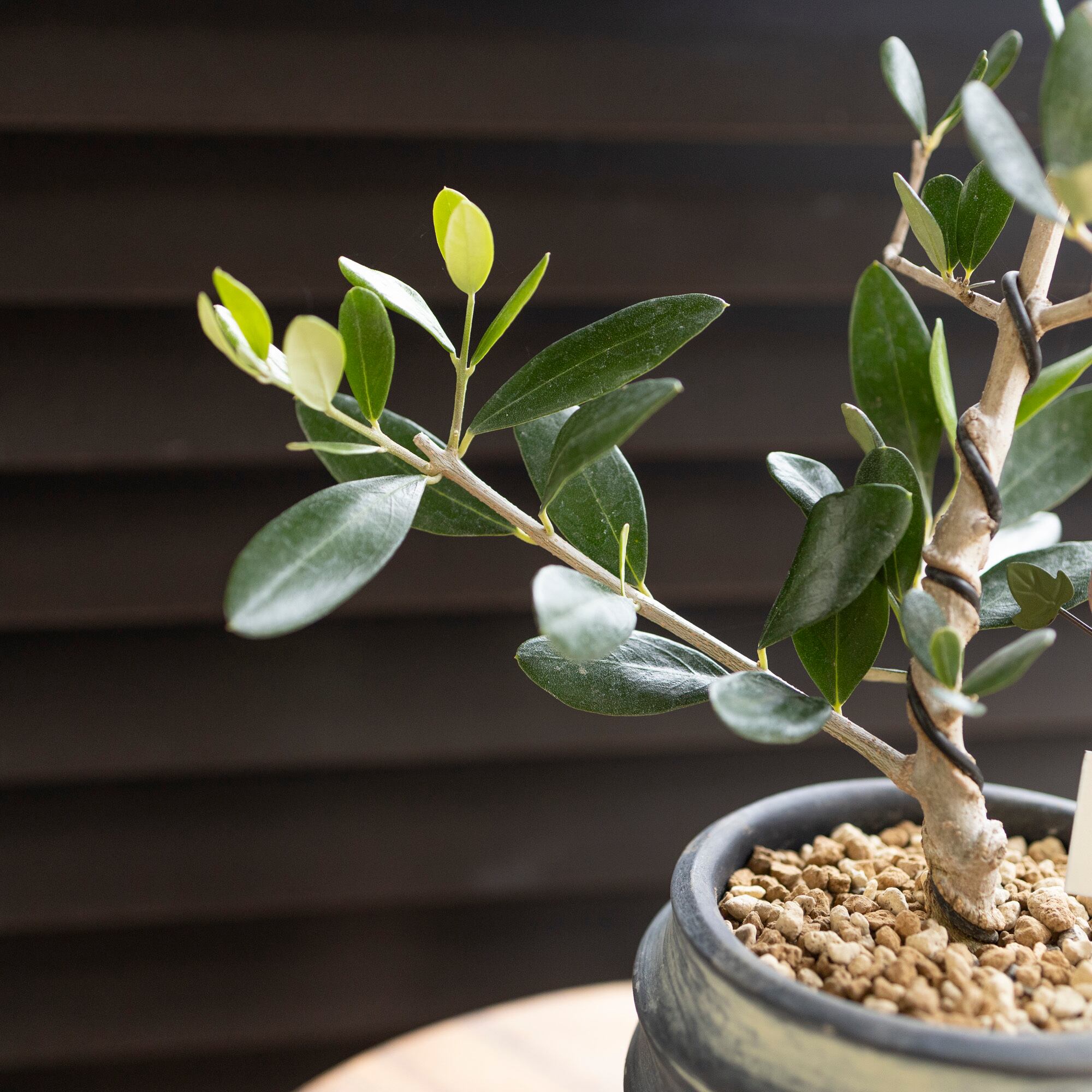 盆栽 Olive オリーブの木 ルッカ Lucca 盆栽仕立て ネイビー 3号 陶器鉢 オリーブ 曲がり 観葉植物