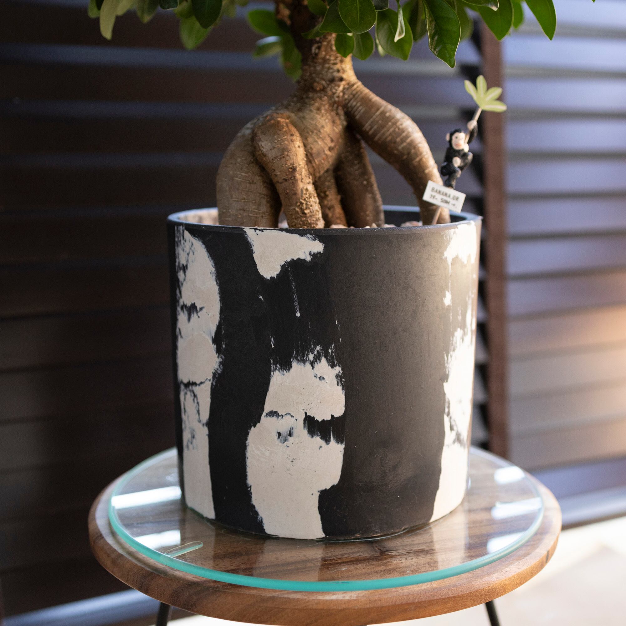 7号樹脂鉢 ブラック×ホワイト マーブル模様
