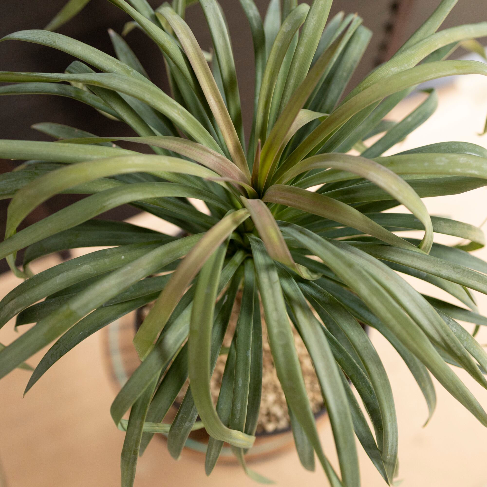 放射状に垂れ下がる青みを帯びた葉が美しい。
