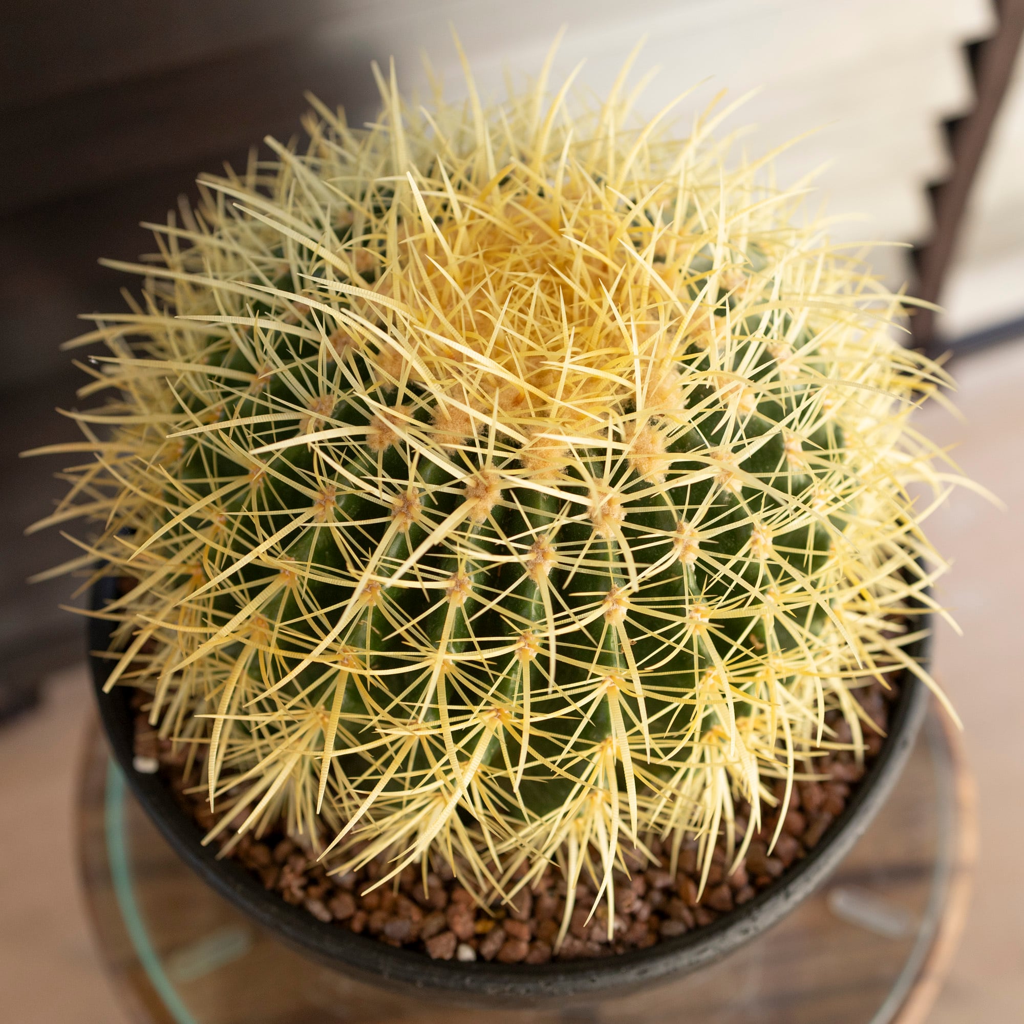 Echinocactus grusoniiという名の品種で黄金色の鋭いトゲで覆われているのが特徴的。