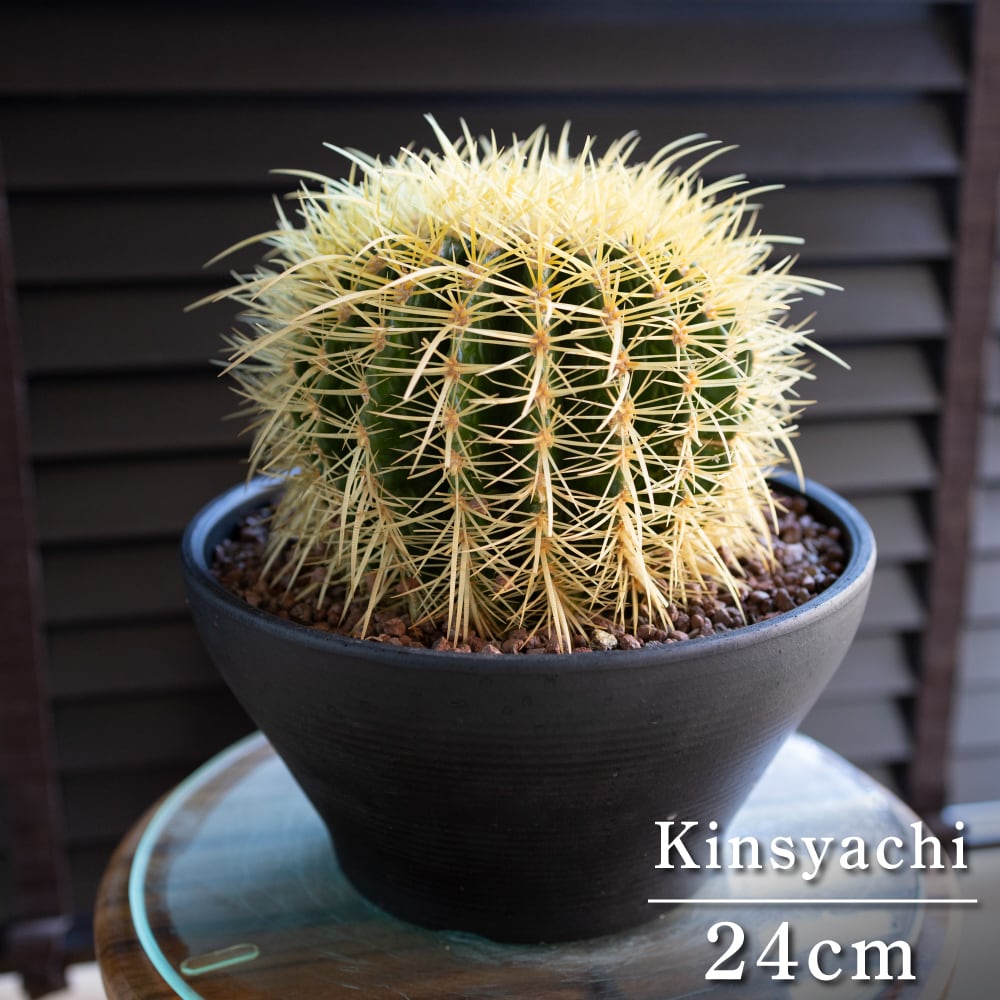 【発根済】24cm 金鯱 サボテン 8号 多肉植物 ドライガーデン 金シャチ キンシャチ 陶器鉢 1011BK2
