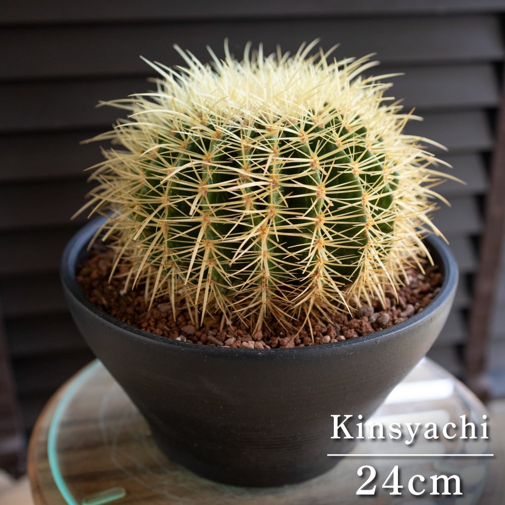 【発根済】24cm 金鯱 サボテン 8号 多肉植物 ドライガーデン 金シャチ キンシャチ 陶器鉢 1109BK-1