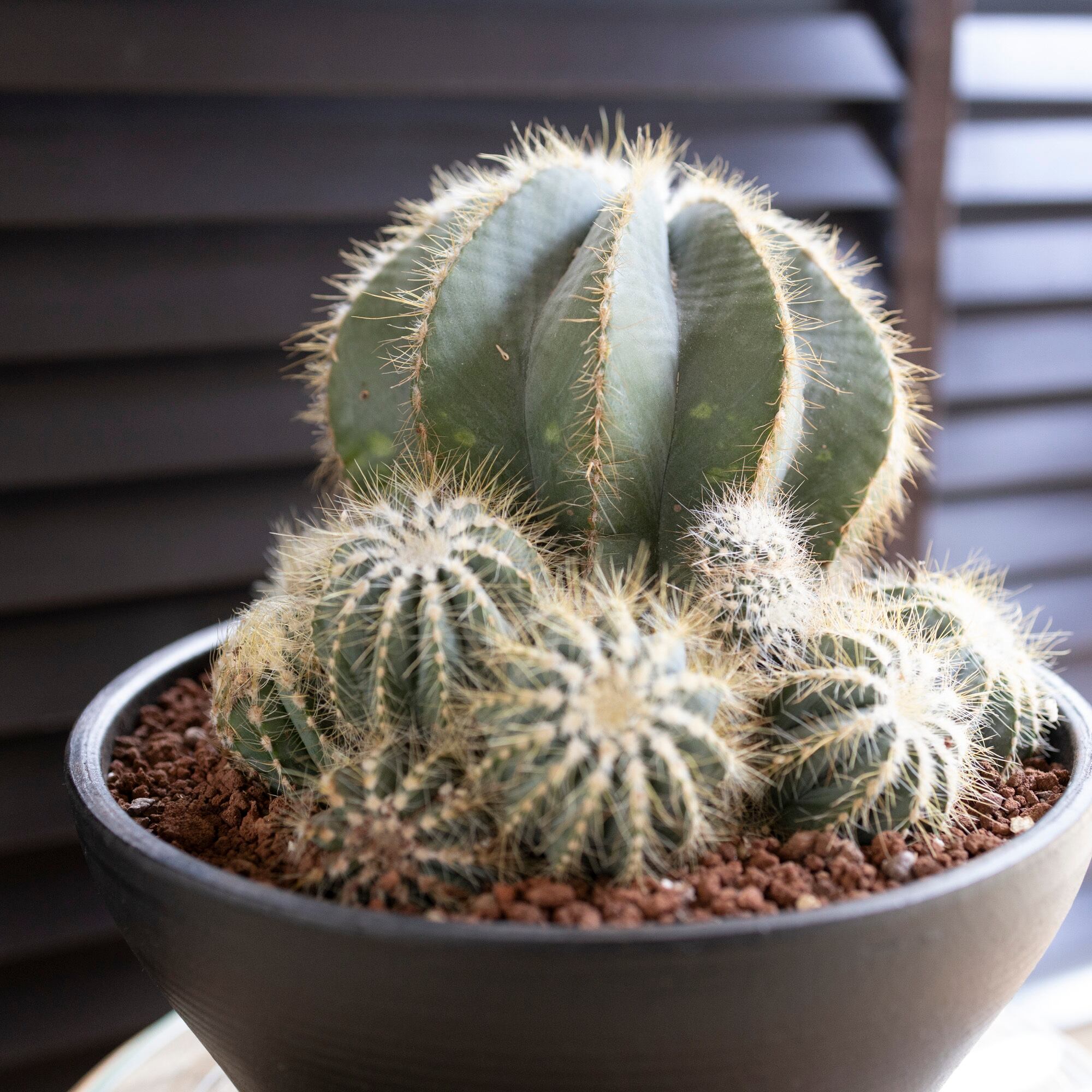 光に向かって成長する性質により、片側だけしか日が当たらないと、丸い形が崩れてきますので、定期的に鉢を回してあげるといいです。