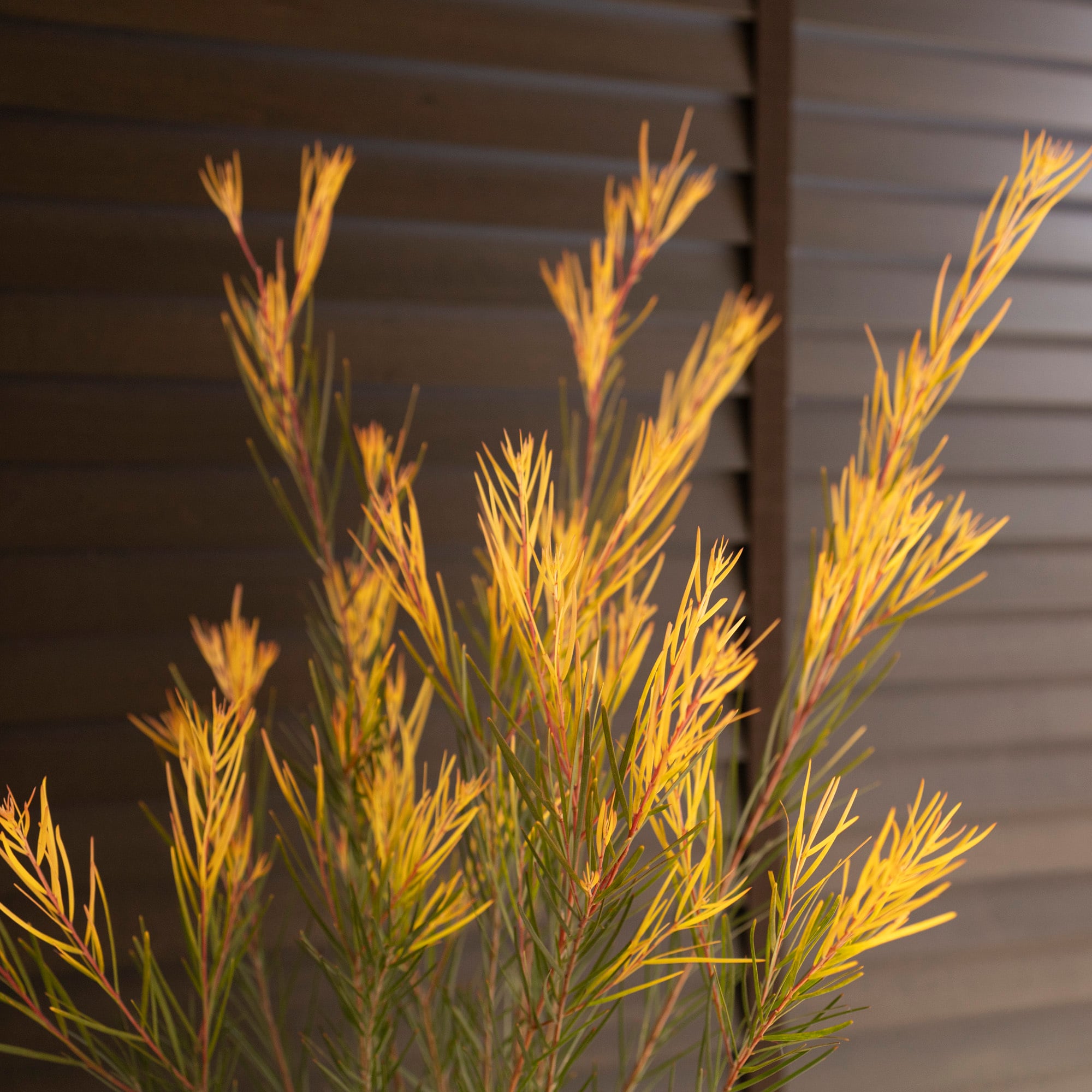 発色のいいゴールドに色づく葉っぱが美しく、落葉しないので一年中楽しめます。